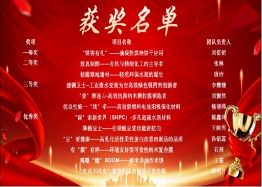 经过激烈比拼,展示了食品行业、化学专业特有的新技术、新业态、新模式,营造出浓厚的创新创业氛围,赛出了友谊,赛出了成绩,最终评出一等奖1名、二等奖2名、三等奖3名、优秀奖6名。
