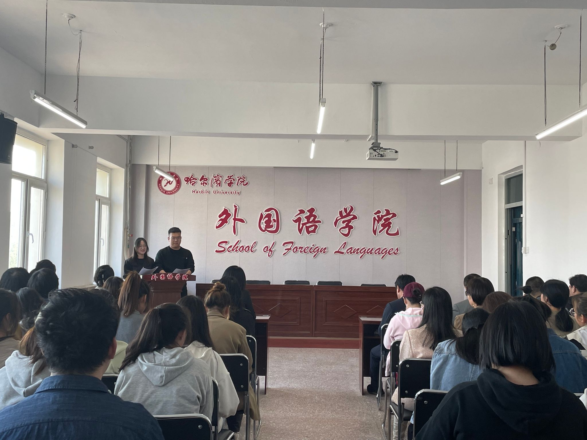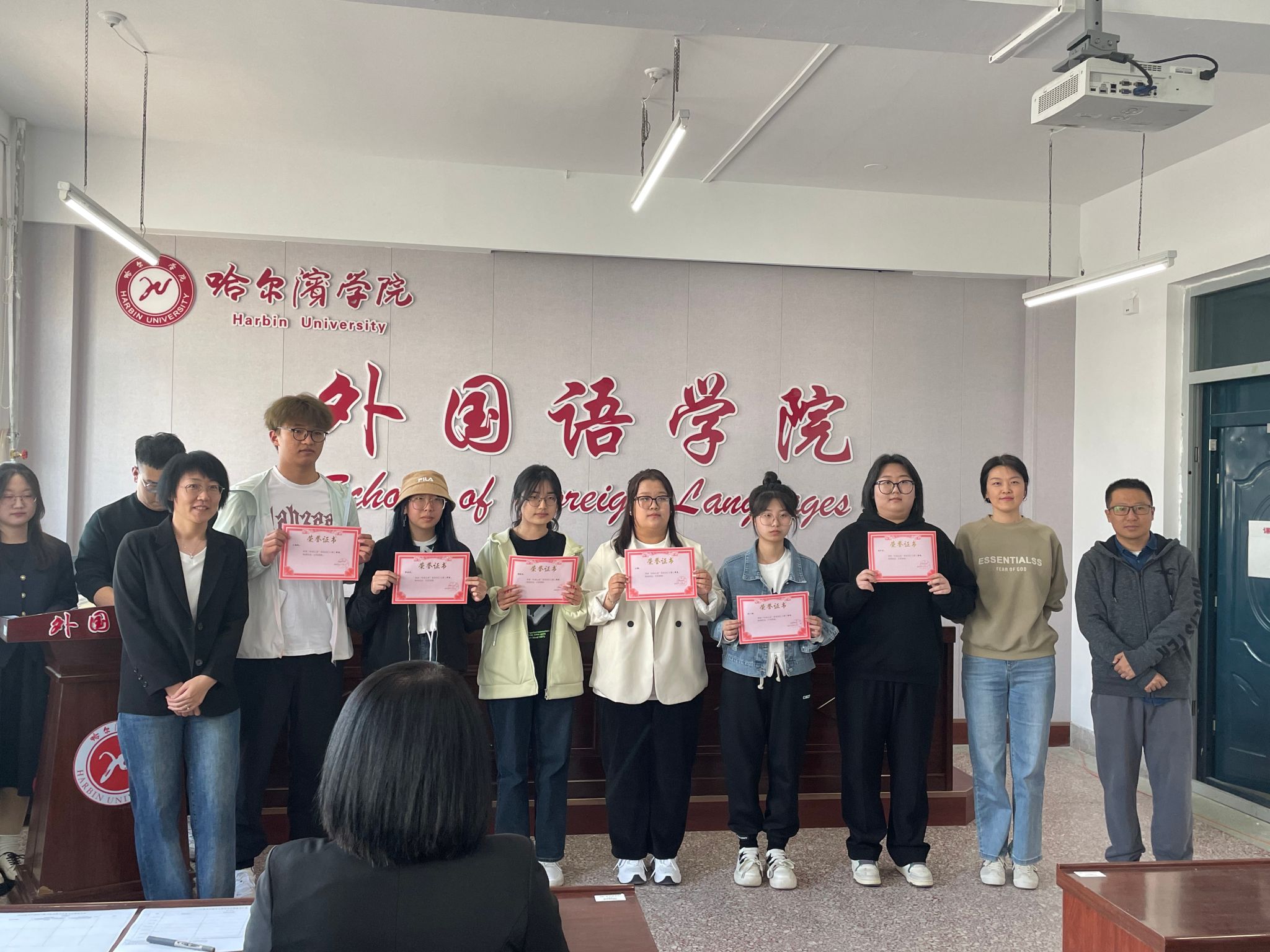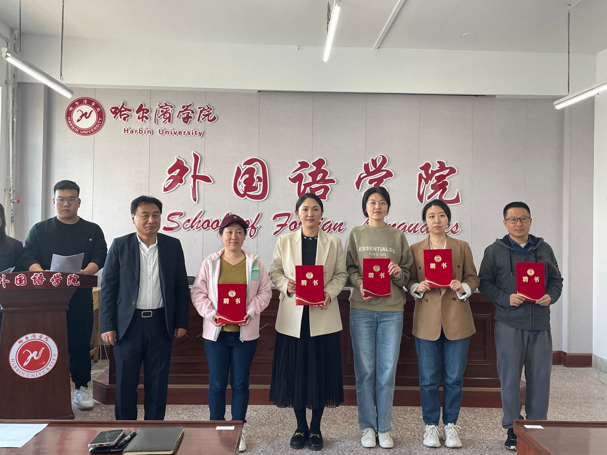 (文/于海洋)为着力推进“一高二有三强”应用型人才培养,5月10日下午在一号楼1527会议室,外国语学院隆重举行“外语之星”词汇大赛颁奖暨优生优培导师聘任仪式。院长孙延弢、副院长谢小童、龚柏岩,副处级辅导员张志涛、各系主任及教研室主任参加并为获奖学生颁发奖项,学生郑涵、韩雯博主持颁奖典礼。