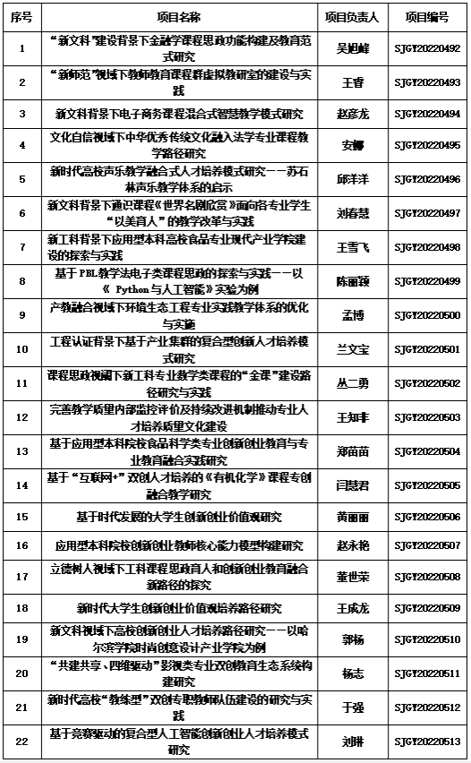 2022年度黑龙江省高等教育教学改革研究一般研究项目立项汇总表