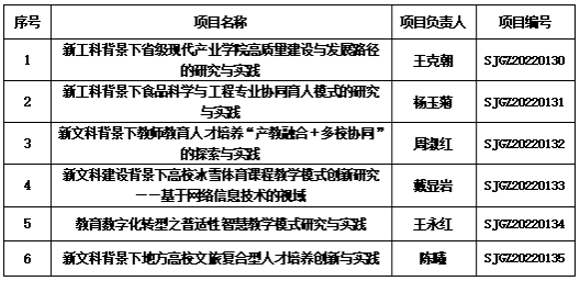 按照《省教育厅关于开展2022年度高等教育教学改革研究项目申报与结题的通知》要求,黑龙江省教育厅组织开展了2022年度高等教育教学改革研究项目立项评审工作,经专家组审核评议、公示无异议,近日公布了2022年度高等教育教学改革研究项目立项名单。我校共获批28项黑龙江省高等教育教学改革研究项目。其中,重点委托项目6项,一般研究项目22项。