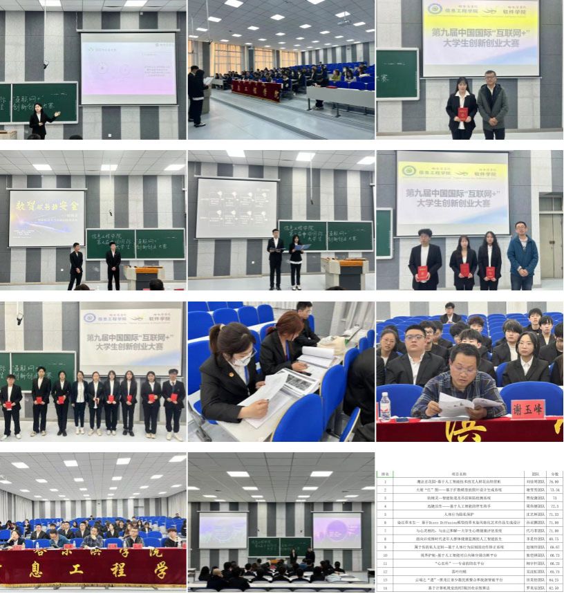 把激昂的青春梦融入伟大的中国梦,努力成长为德才兼备的有为人才,信息工程学院于5月10日下午在2602举办第九届中国国际“互联网+”大学生创新创业大赛。本次大赛邀请谢玉峰老师,王斌老师 ,毛岩老师,路雯婧老师担任大赛评委,双创学院黄丽丽院长莅临指导。