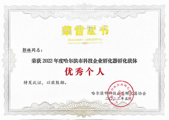 (文/黄丽丽)5月23日,哈尔滨市科技企业孵化器协会第三届第一次会员大会暨哈尔滨市科技成果转化平台发布仪式在深哈产业园隆重举行。大会对哈尔滨市科技企业孵化器2022年度优秀集体和个人进行了表彰,我校创新创业学院副院长郭林荣获“2022年度哈尔滨市科技企业孵化器孵化载体优秀个人”称号。