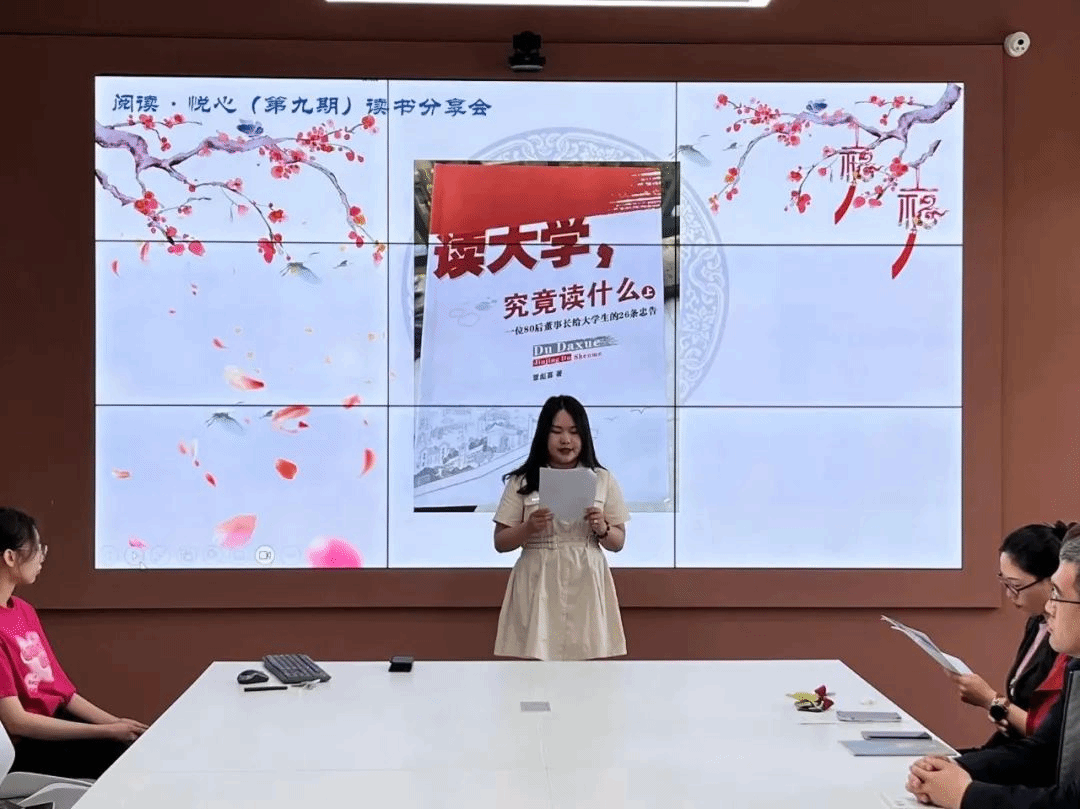 (文/高晶)为进一步提高学生的阅读能力、丰富学习生活的读书体验,更好营造书香校园的阅读氛围,努力在以学铸魂、以学增智、以学正风、以学促干方面取得实效,5月18日,经济管理学院举办了诚信书苑“阅读·悦心”第九期读书分享会活动。正处级辅导员沙迪、副院长高子清、副院长程宇、财务管理系主任初有为、教学管理办公室主任于天琦、综合办公室齐计欣冉及全体辅导员老师参加了本次活动。活动由院大学生综合素质拓展社团读书模块负责人高顺同学主持。