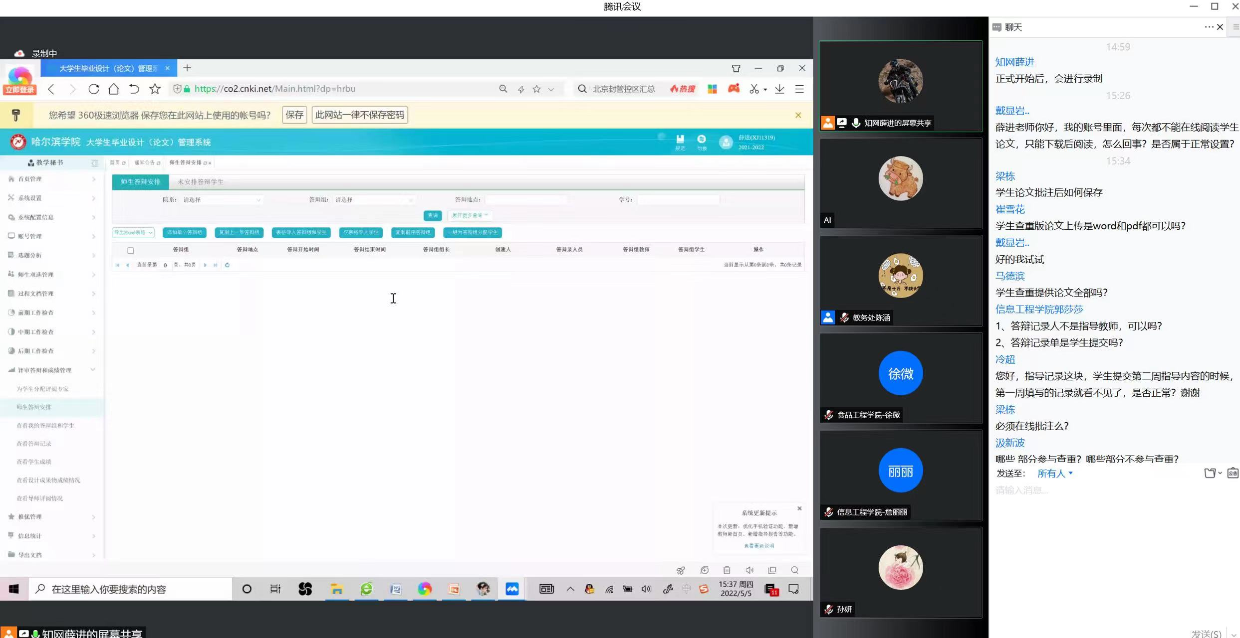 (文/陈涵)为进一步规范我校毕业论文(设计)管理工作流程,及时解决“毕设系统”使用过程中遇到的技术问题,确保高质量如期完成2022届本科毕业论文(设计)工作,5月5日下午,教务处组织召开“中国知网毕业论文(设计)管理系统”第二期培训会,各学院教学秘书、指导教师等200余人参加了本次培训会。会议采取线上形式召开。
