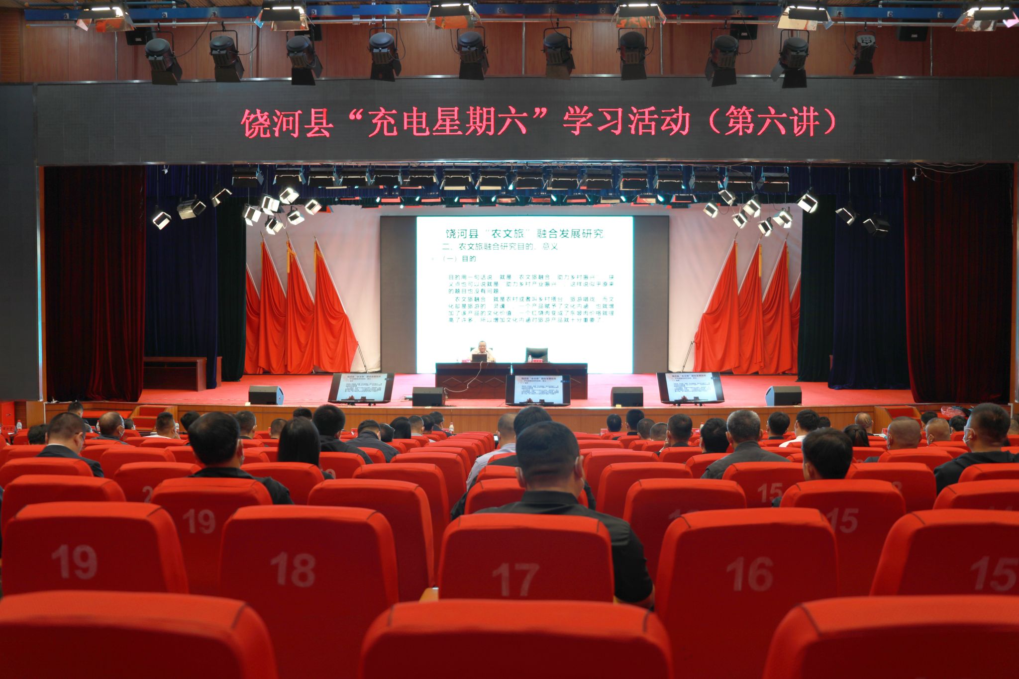(文/朱东鹤、梁梦阳)为学习贯彻党的二十大精神,深入开展能力作风建设“工作落实年”活动,饶河县委举行“充电星期六”系列学习活动。6月10日,系列学习活动第六讲在饶河县融媒体中心演播大厅举行,活动邀请我校派遣饶河县援边干部刘向阳副教授作题为《饶河县农文旅发展研究》的宣讲。饶河县县委、县政府、人大、政协相关领导出席活动。