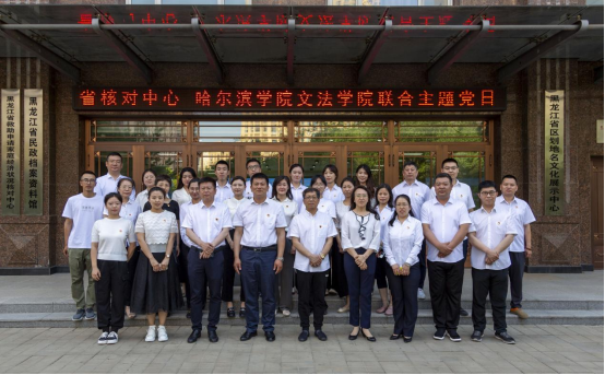 (文/周晓燕、石芳萍)6月25日下午,文法学院与黑龙江省救助申请家庭经济状况核对中心举办校馆联合主题党日活动,双方同时签订了实践教学基地合作协议。活动在省区划地名文化展示中心隆重举行,省核对中心主任李悦、副主任李文庆,哈尔滨学院文法学院党委书记杜真强、院长龚宏、副书记王维、副院长季连帅,以及两个基层党组织共计30余名党员同志参加本次活动。活动由省核对中心副主任李文庆主持。