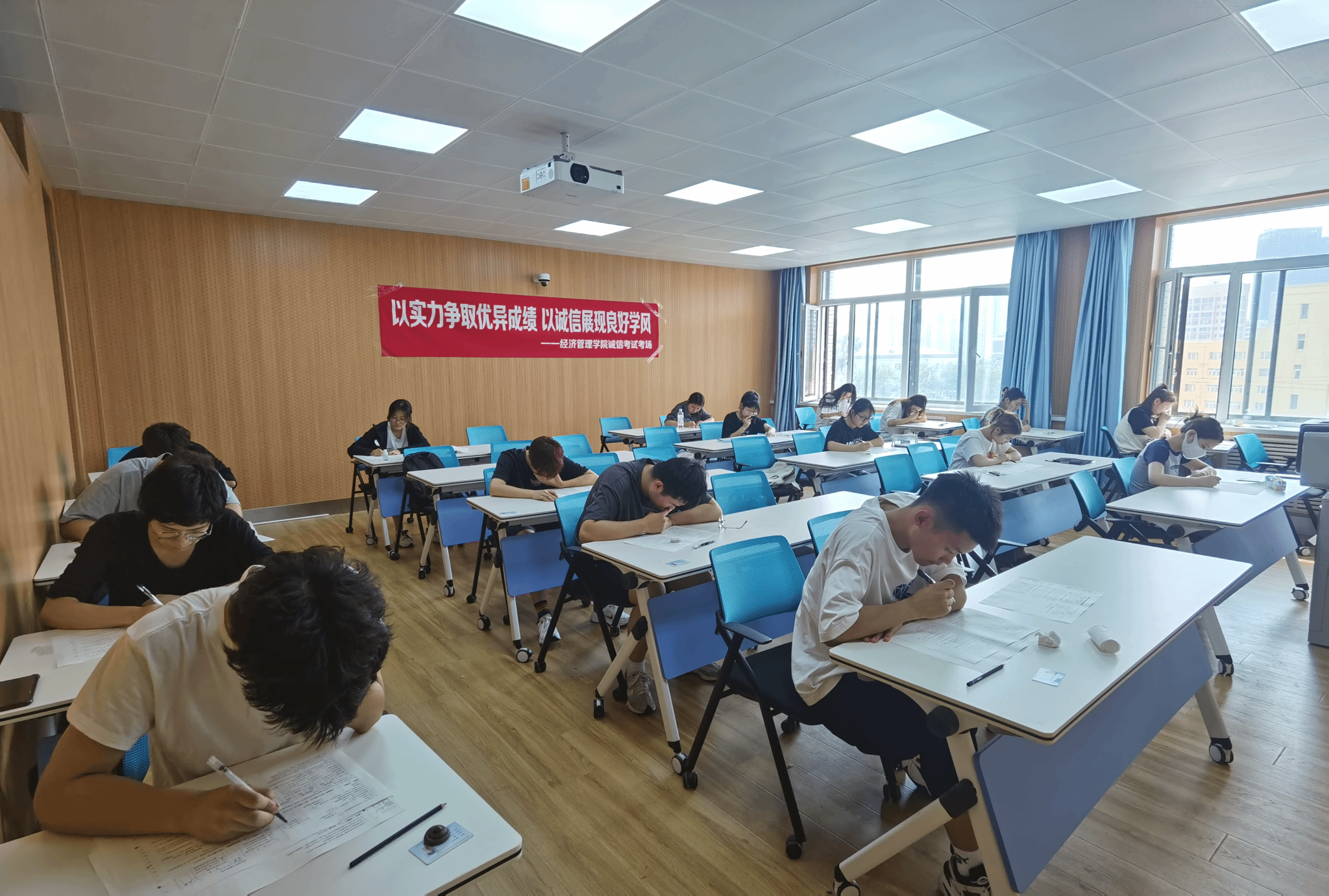 (文/张强)按照《哈尔滨学院学风建设实施方案》要求,本学期期末考试期间,由学生处组织各二级学院学生以班级为单位自主申请无人监考考试。经济管理学院2022级会计学专业(一)班、商务经济学专业(一)班、商务经济学专业(二)班全体学生自主申请无人监考考场,于6月28日、29日,在现代信息化教学中心435、437教室进行“高等数学”“西方经济学”“会计学”科目无人监考期末考试。