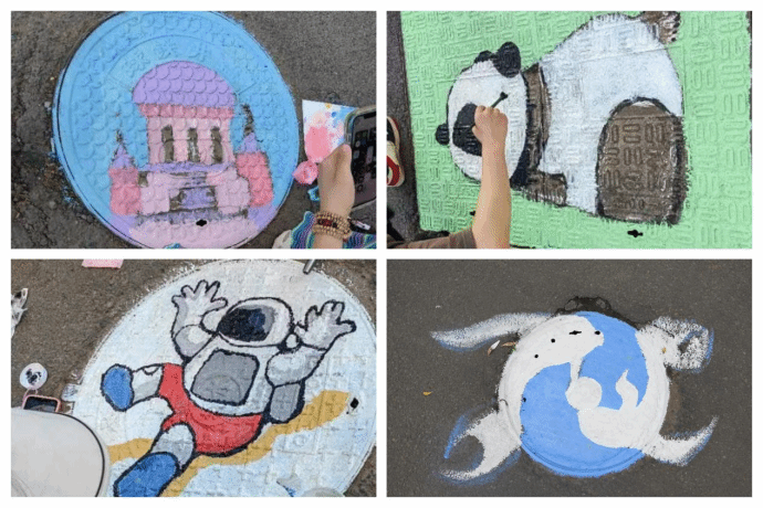 本次创意井盖彩绘活动,由艺术与设计学院肖广兴副教授指导,绘画专业的28名学生对校园井盖进行了整体考察和设计,以井盖为画板,认真勾画轮廓、上色、修边,将原本冷冰冰、千篇一律的灰暗井盖变成了色彩斑斓的“景”盖。从“中国梦”到英雄航天员,一个个井盖绘出爱党爱国情怀,展现出青年学生坚定的理想信念和正确的价值观念。从可爱熊猫到浪漫花朵,一个个井盖绘出青春活力色彩,展现出青年学生的年轻个性和天真烂漫。从龙图腾到双鱼戏珠,一个个井盖绘出国家文化自信,展现出中华优秀传统文化的博大精深。从清澈冰花到绝美教堂,一个个井盖绘出城市特色文化,展现出哈尔滨冰雪文化和欧陆文化的灵气神采。