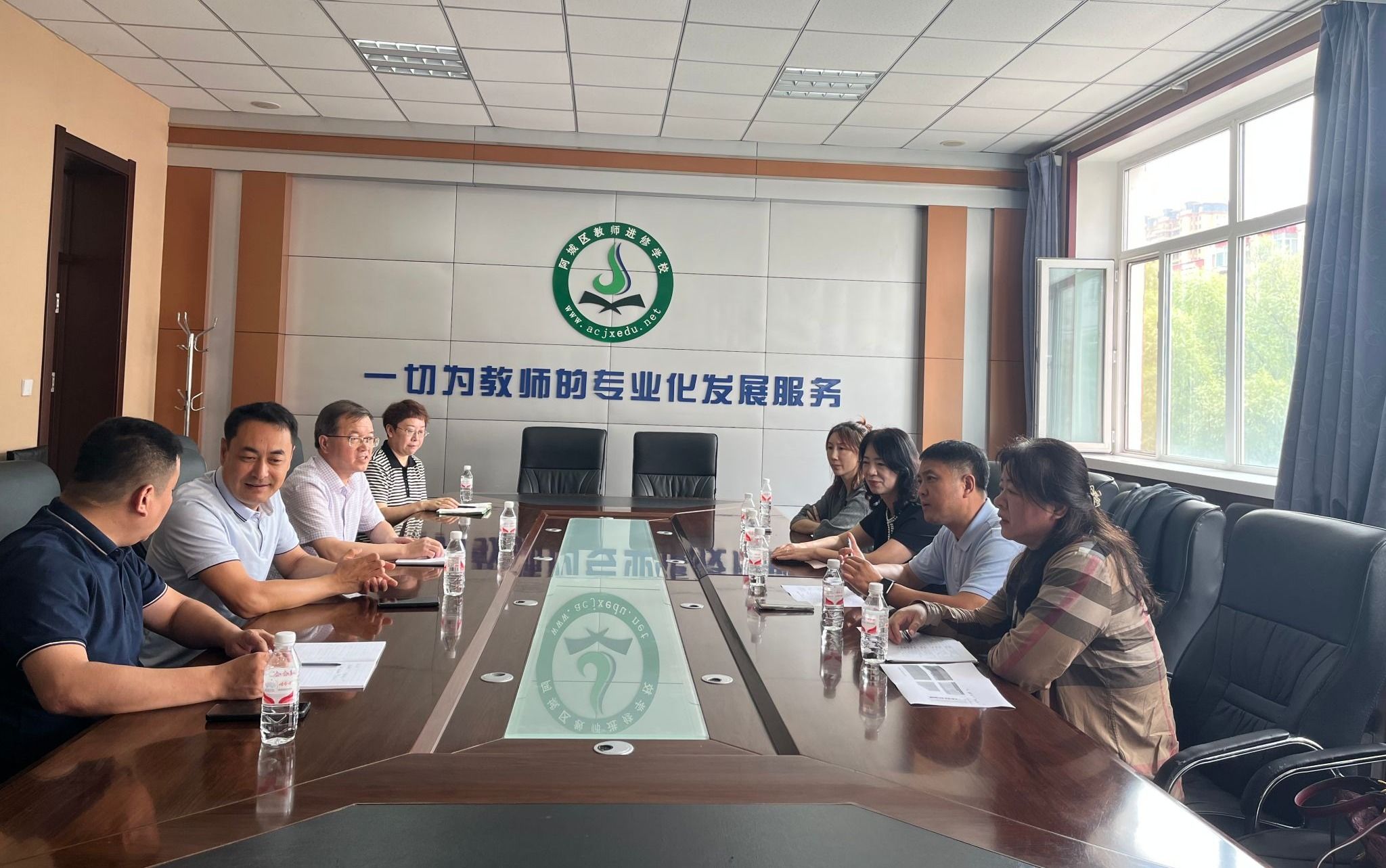 (文/原振莹)为深入抓好“国培计划”黑龙江省哈大齐工业走廊市辖区乡村教师送教下乡培训项目的落实,保障培训任务的顺利实施,继续教育学院院长吴立刚、哈尔滨市教育研究院培训中心科长佟晶、阿城区教师进修学校校长赵志平和阿城区教师进修学校书记孟庆斌于7月5日在阿城区教师进修学校召开了专项推进会议。