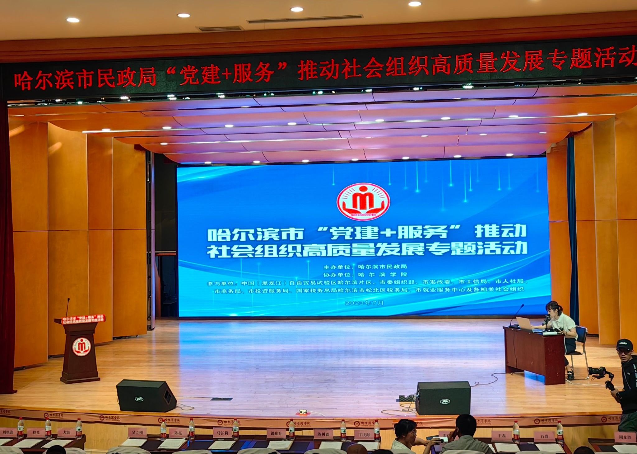 (文/王黎黎)7月7日上午哈尔滨市“党建+服务”推动社会组织高质量发展专题活动在我校召开,活动由哈尔滨市民政局主办,学校继续教育学院协办。市民政局党组书记、局长锡东升、副局长丁庆海,市投资服务局二级巡视员陈树森,我校纪委书记马弘莉出席会议。来自哈尔滨市的社会组织包括商会、学会、协会、民办学校百余家单位、200余人参加本次活动。