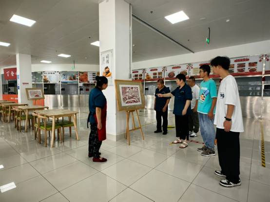 苍松书记指出,优秀的创意设计作品与校园文化环境的建设是一体的,没有好的育人环境无法塑造有创造力的人。此次展出的30多件走进食堂的创意设计作品是艺术设计系党支部推出的“哈苑〞文创工艺美术专业方向设计制作的产品。其中,剪纸作品已开始量化,“中国饭碗端在中国人的手里”泥塑、陶艺作品开始定期陈列。后勤工人现已经开始用这些作品美化布置食堂公共空间的育人环境。