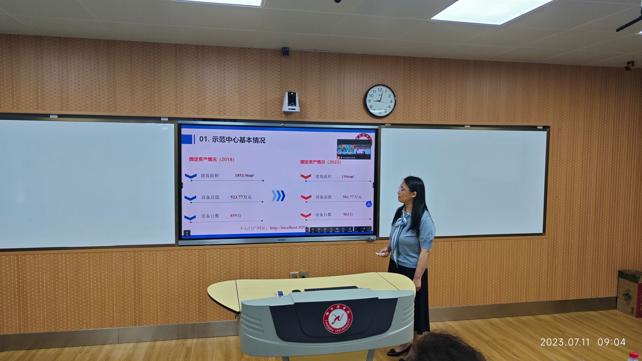 会上物理学省级实验教学示范中心(哈尔滨学院)主任梁红和艺术学省级实验教学示范中心(哈尔滨学院)主任高亮分别汇报了物理学和艺术学省级实验教学示范中心近五年来的建设和发展情况。
