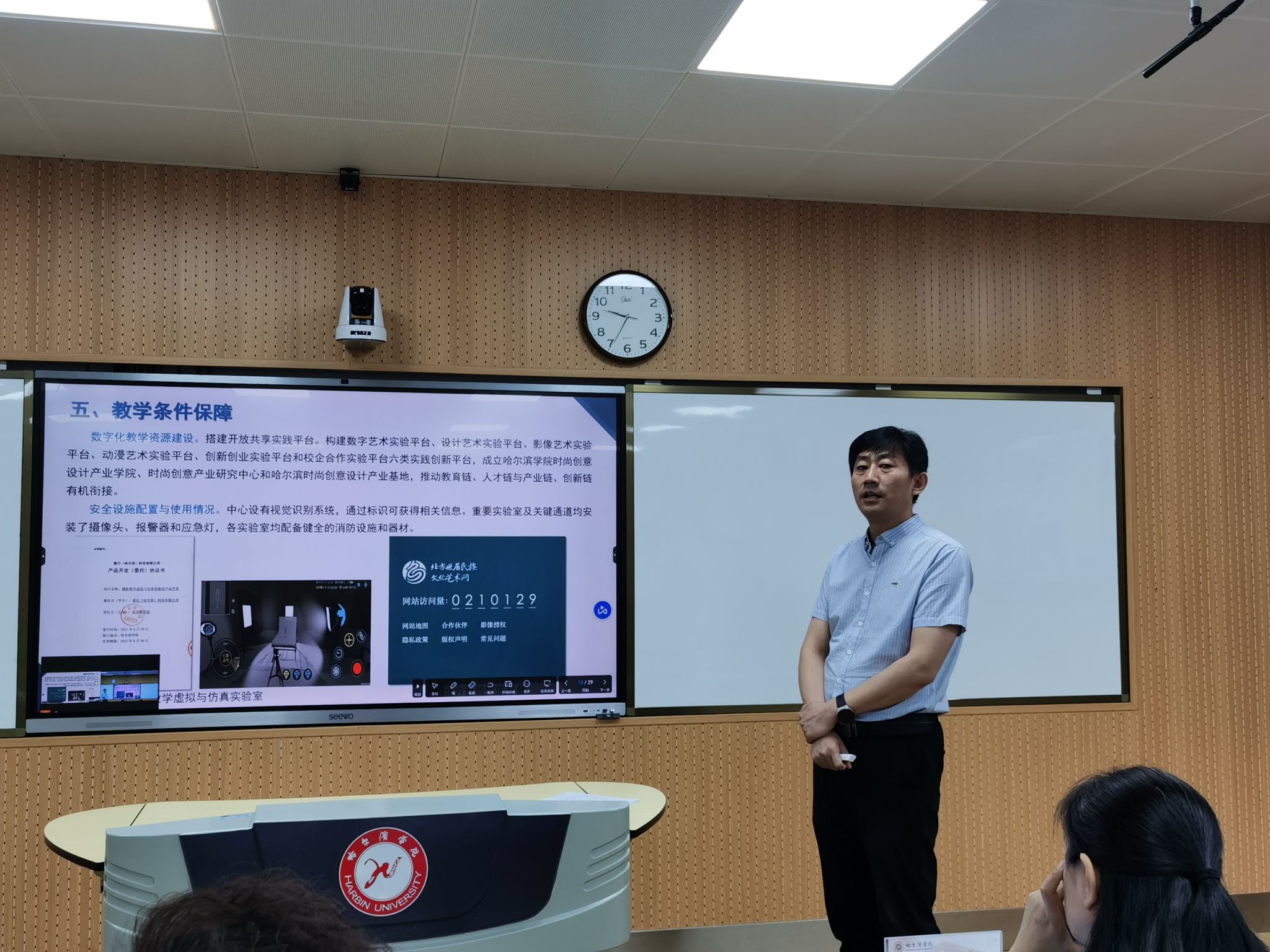 (文/余跃海)按照黑龙江省教育厅工作部署,我校于7月11日上午在现代信息化教学中心5303室召开省级实验教学示范中心阶段性总结校外专家评审会。评审会采取线上线下相结合的方式进行。学校邀请省内高校物理学和艺术学领域6位知名专家在线参会,对我校物理学和艺术学省级实验教学示范中心阶段性总结情况进行评审。会议由教务处处长姜艳丽主持,教务处副处长崔永滨、艺术与设计学院副院长霍炬、土木建筑工程学院副院长高春以及相关人员参加会议。