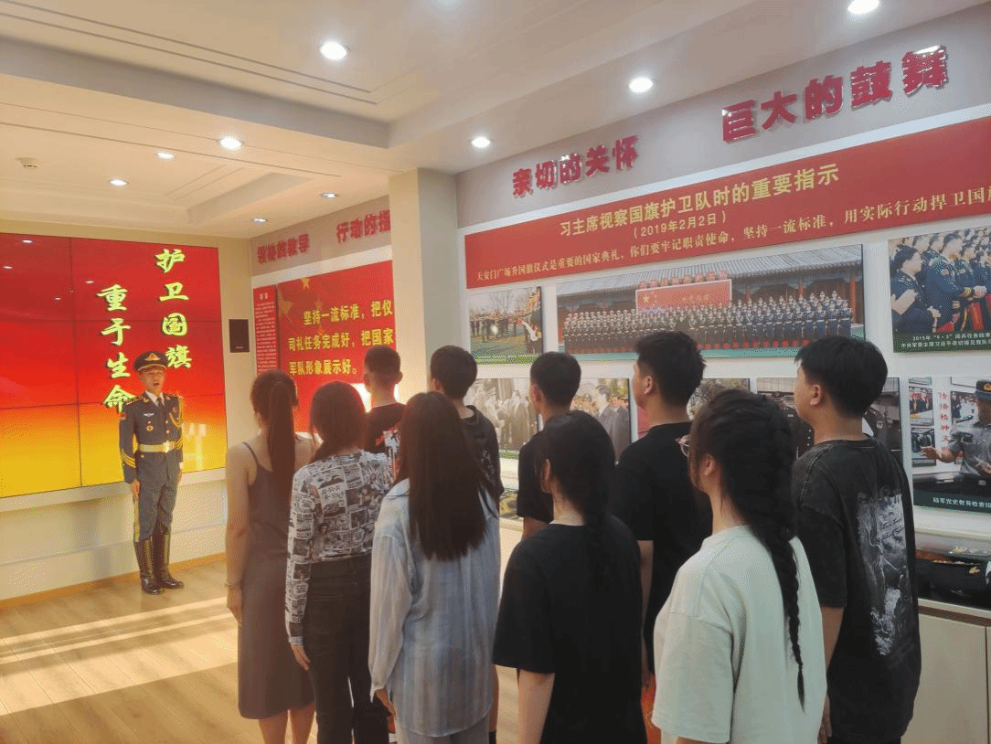 训练后,同学们来到部队营房参观了红色教育展览,了解了部队建设和发展。从1982年组建至今,国旗护卫队共执行3万余次升旗和降旗任务,至今保持零失误记录。部队先后六次荣立三等功,一次一等功,并被武警总部授予“天安门模范中队”的荣誉称号。全体官兵自觉把战斗岗位同祖国的荣辱兴衰融为一体,把满腔热血化作爱国之情,在神圣的战斗岗位上甘愿奉献青春年华,在世界上塑造了良好的中国军人形象。天安门升旗仪式不仅见证了中国国家的繁荣,更象征着中国人民的骄傲和自信。同学们被战士们的恪尽职守、甘于奉献的精神震撼,纷纷表示本次训练不仅是一次思想上的淬炼,更是精神上的洗礼。
