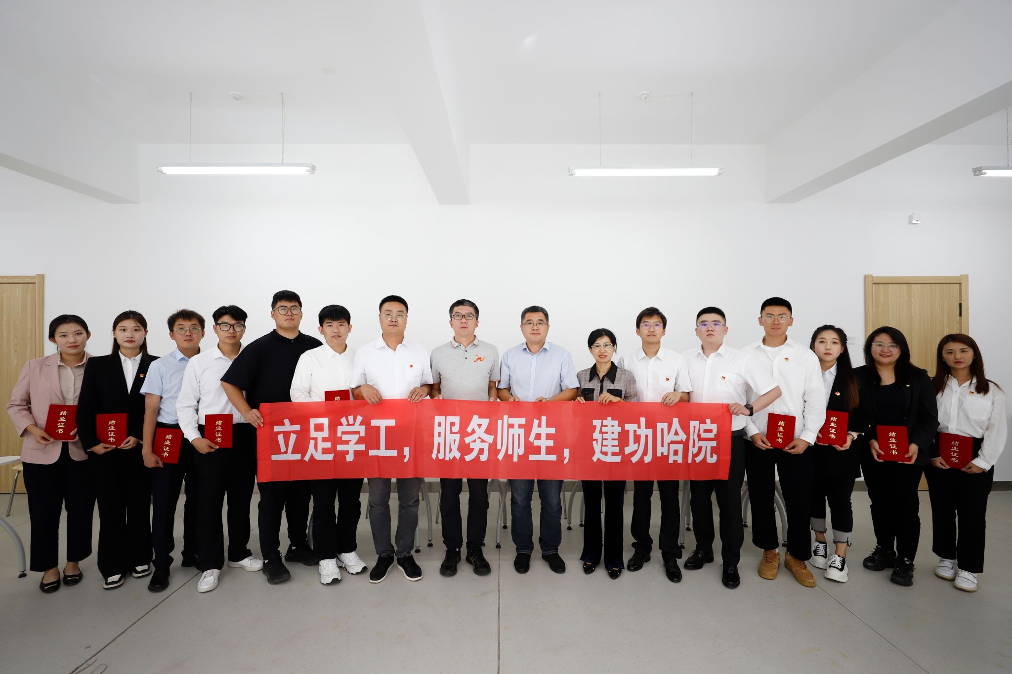 会议最后,学生处副处长庞哲为成长导师颁发聘书,并同成长导师一起为参训辅导员颁发结业证书。