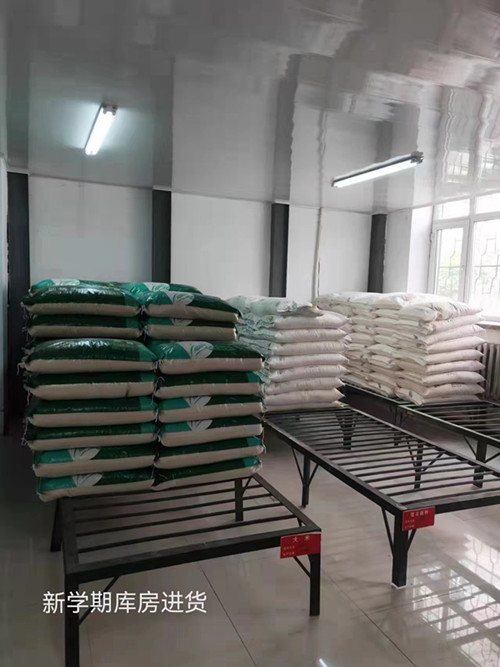二、提前储备大米10000斤、面粉5000斤、食用油300箱、各种调料500斤、鸡肉10000斤、猪肉800斤、各类衍生品2000斤,确保学校封闭期间食堂原材料供给充足。
