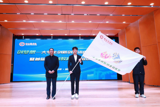 仪式现场,宋国利为我校在黑龙江省第九届中国国际“互联网+”大学生创新创业大赛荣获金奖项目团队及指导教师颁发奖杯和证书。科技处处长李惠男、合作共建处处长张旭东、学生处处长于迪、教学质量评估中心主任张迎宏共同为我校在黑龙江省第九届中国国际“互联网+”大学生创新创业大赛荣获银奖和铜奖项目团队代表颁奖;就业指导处处长张成强为第七期“双创”训练营授予了营旗。教务处副处长崔永滨为第六期“双创”训练营学员代表颁发了结业证书。