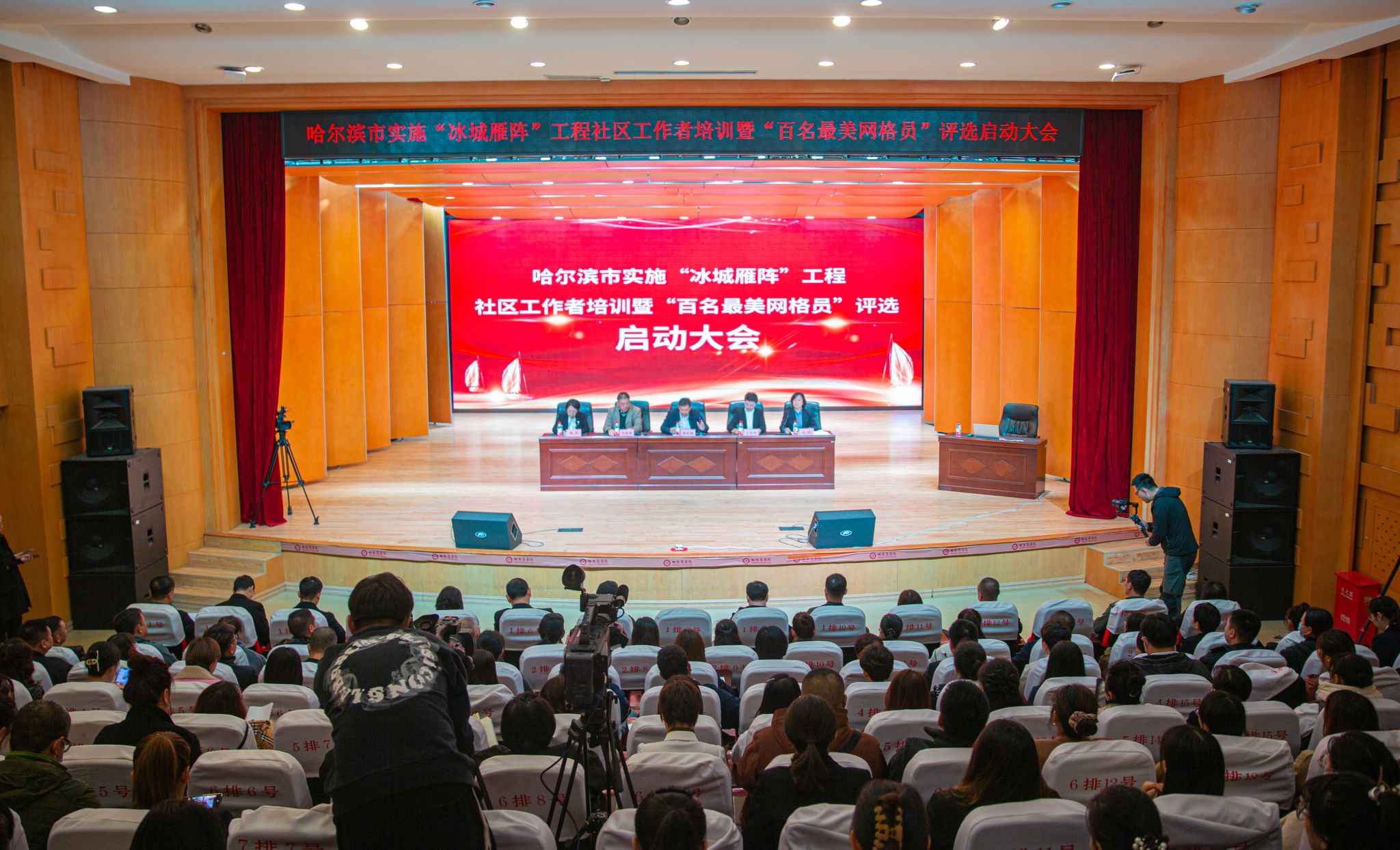 (文/原振莹)10月19日,由哈尔滨市委组织部、哈尔滨市民政局主办,哈尔滨学院继续教育学院承办的实施“冰城雁阵”工程社区工作者培训暨“百名最美网格员”评选启动大会,在哈尔滨学院音乐楼音乐厅举行。市委组织部、市民政局及我校相关领导出席会议。此次会议采取线上线下同步培训的模式,来自我市各区(县)民政局、街道党工委和社会事务办主任优秀代表共180人在主会场参加会议,全市11832名社区工作者在线上直播间参加会议。