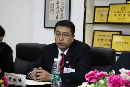 校党委委员、副校长吴旭峰认真聆听师生们的交流发言,并与师生们分享了自身的求学经历和心得体会。他指出,团学干部要在充分认识自我的基础上提升自我管理能力,要以身立教、为人楷模,起到表率作用。要明确自己肩负的责任,做严于律己的表率,要乐观的面对在学习过程中遇到的任何困难,充分发挥团学骨干在学风建设中的示范引领作用。要养成健康运动阳光生活的积极心态。健康的体魄是未来学习生活的基础,一个健康的身体,才有能力去面对任何挑战,让你在学习生活中更加自信。他强调,学风建设是一项系统性、持续性工程,全校各级团学干部要以主人翁意识肩负起使命与责任,传承哈院的优良作风,直面在学风中仍然存在的问题,刀刃向内、自我革命,不断加强学风建设,使优良学风为学生成长成才赋能,为学校高质量人才培养和持续发展蓄势。