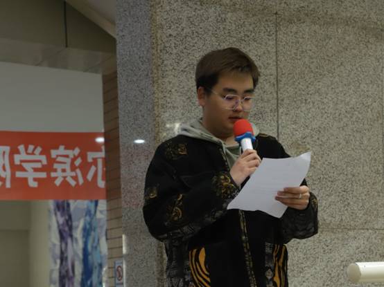 在开幕式上,艺术与设计学院2023级学生代表王跃焱代表作者进行了发言,感谢校团委提供的展示平台和大力支持,并表示学院团委将以本次展览为契机,促进科技与艺术深度融合,推动校园文化建设。