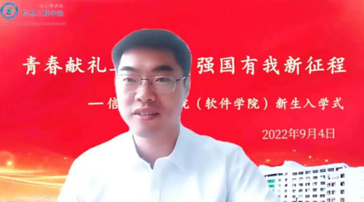 (文/陈思)9月4日上午,信息工程学院2022级新生入学式暨开学第一课在线上举行。信息工程学院院长王克朝、党委书记王克臣等学院领导出席入学式,学院各党支部书记、各系部办(中心)主任、师生代表及全体辅导员参加。学院正处级辅导员陈思主持仪式。