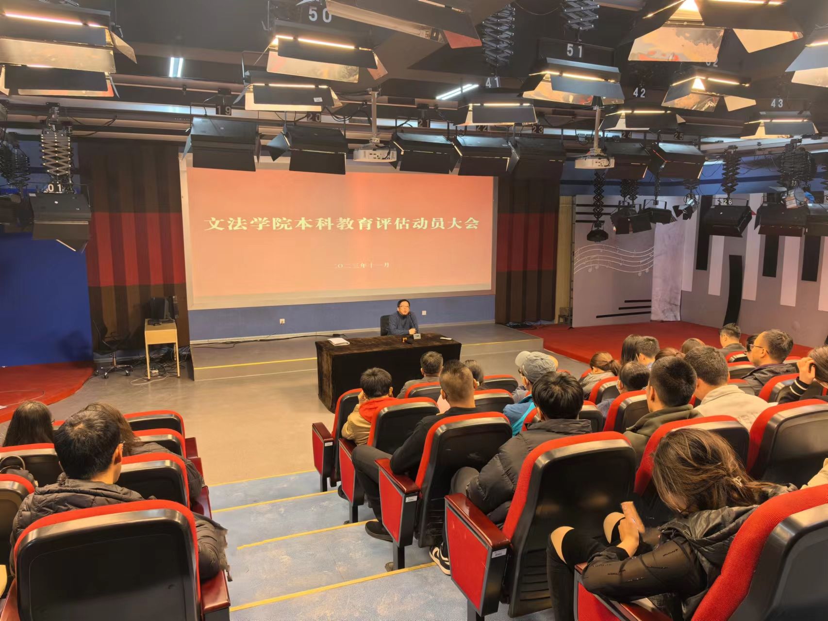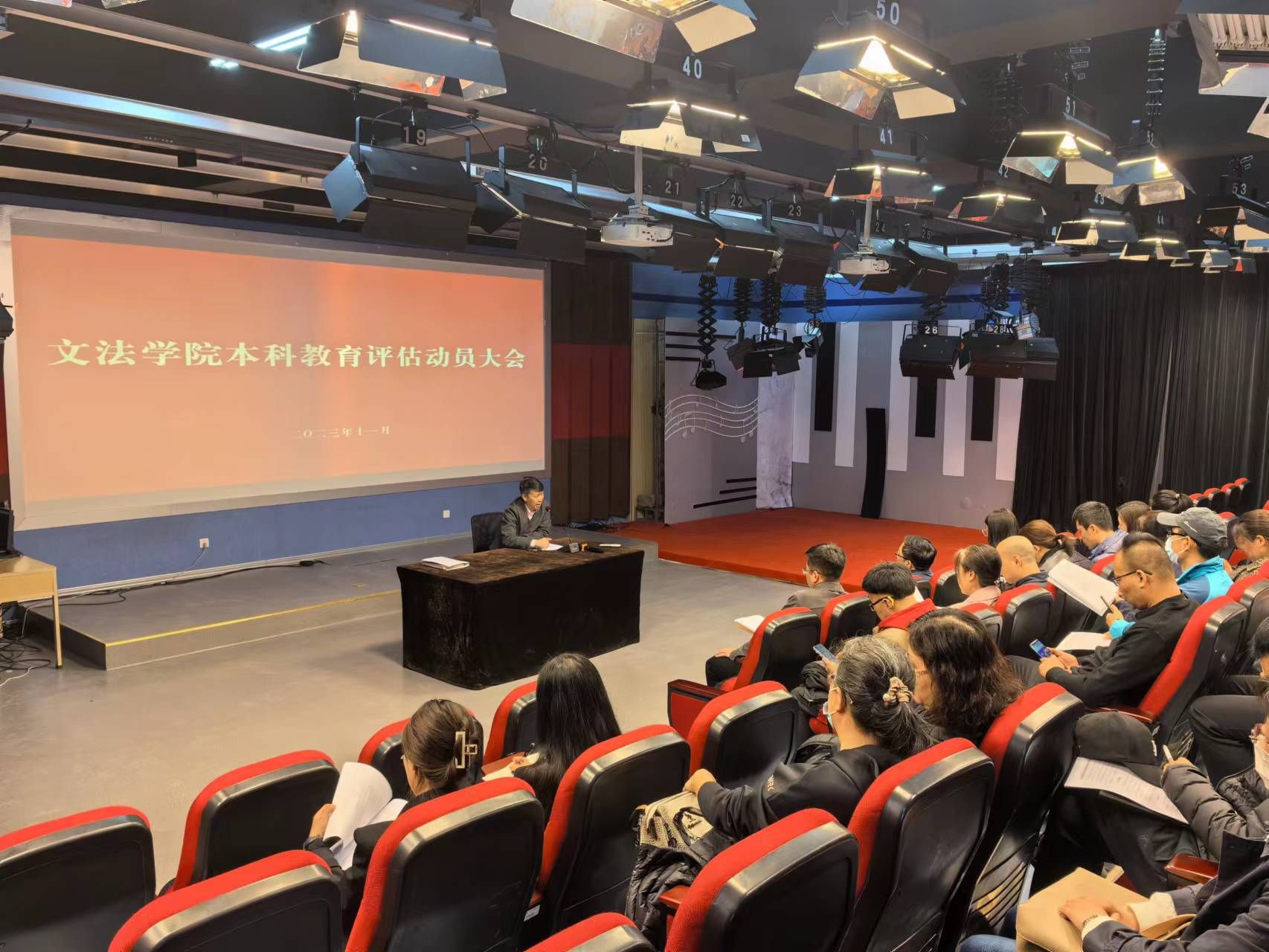 (文/龚宏、周晓燕)11月1日下午,文法学院在1401演播厅召开新一轮本科教育教学审核评估动员大会。学院领导班子出席会议,并分别从解读评估文件、落实评估任务、提高思想认识,提升评估准备工作成效等方面做了发言。学院全体教师参加会议,会议由副院长周晓燕主持。