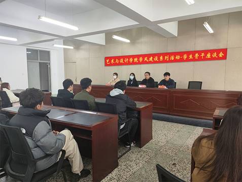 (文/戴佳宝)11月1日,艺术与设计学院学工办举办了加强学风建设学生骨干座谈会,艺术与设计学院副处级辅导员郭鹏程、学工办主任赵健、辅导员戴佳宝、童晨及27名学生代表参加了座谈会。