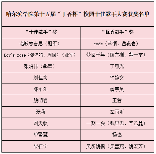 “校园十佳歌手”大赛是深受我校学子欢迎的文化品牌活动之一,旨在繁荣校园文化,为学生提供展示青春风采、成就青春梦想的舞台,彰显哈院学子积极向上的精神风貌。今后,校团委将会开展丰富多彩的第二课堂活动,打造精品校园文化活动品牌,营造百花齐放的多元校园文化氛围,促进学生全面发展,团结带领广大团员和青年建功新时代、奋进新征程。
