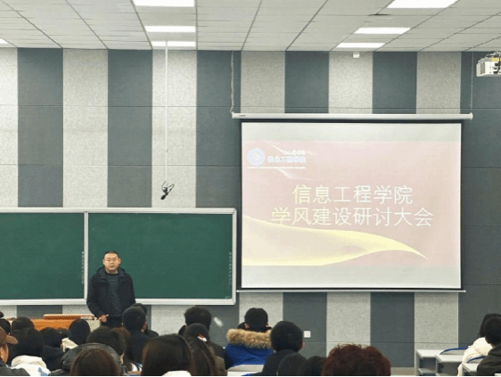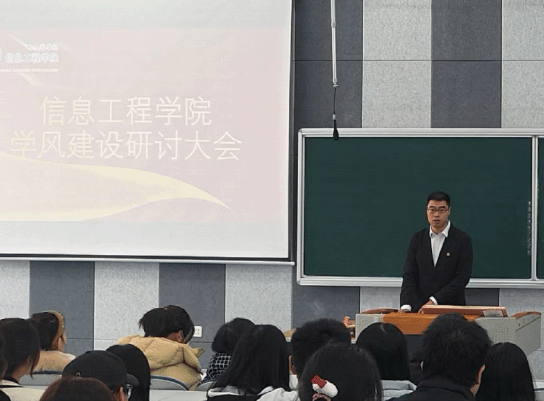 (文/陈思)为落实《信息工程学院2023-2024学年学风建设工作落实方案》,切实抓好学风建设,大力弘扬“知行统一 勤奋求真”的优良学风,信息工程学院于11月8日组织召开学院学风建设研讨会。学院党委书记王克臣、正处级辅导员陈思,全体辅导员、学生干部和各年级学生代表参会。学院学工办主任励小巍主持。