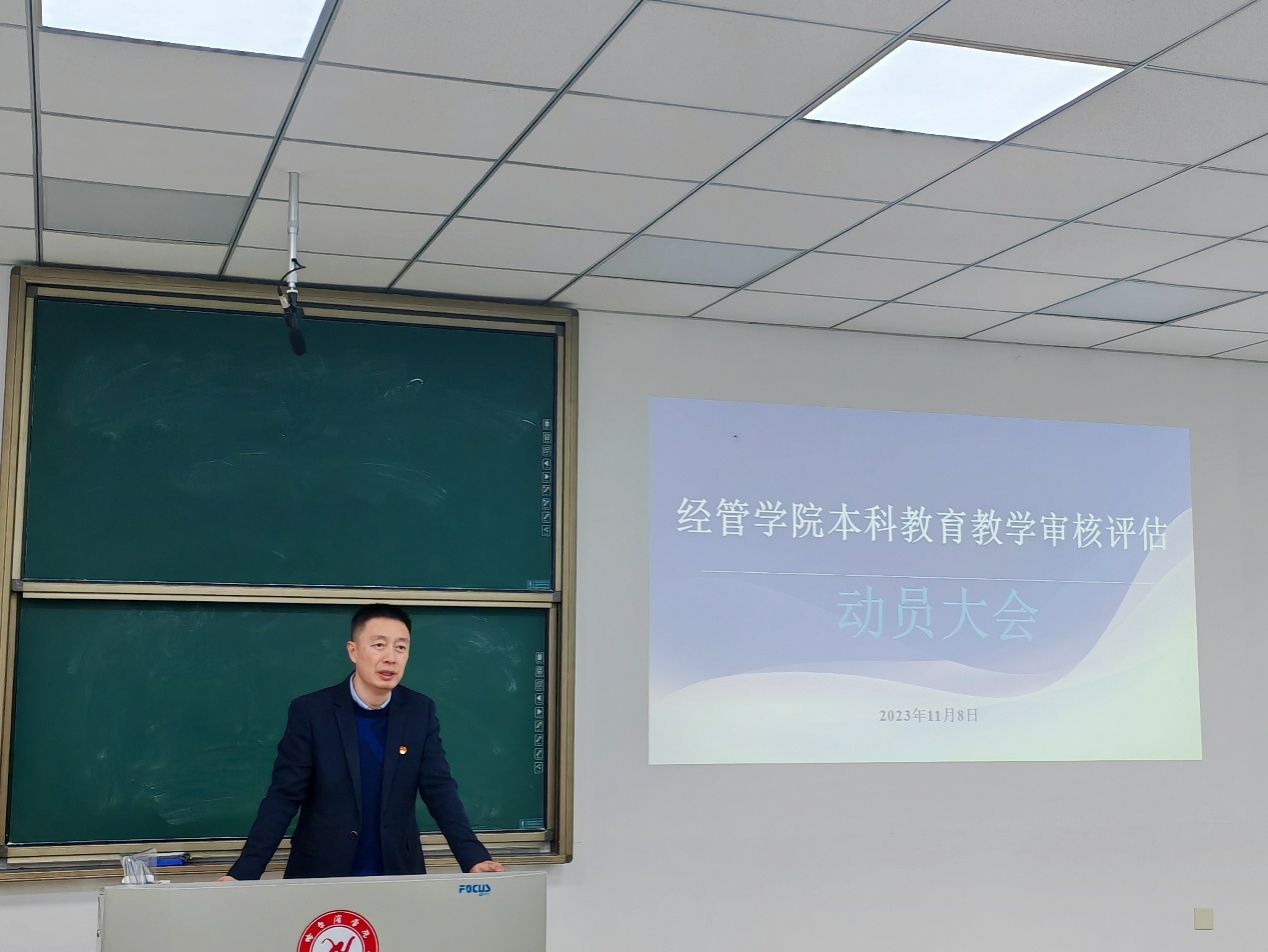 (文/丰加颖)11月8日下午,经济管理学院在8201召开新一轮本科教育教学审核评估动员大会,对迎评的筹备工作进行了部署。院班子成员及全体教师参加会议,会议由院党委书记孙亮主持。