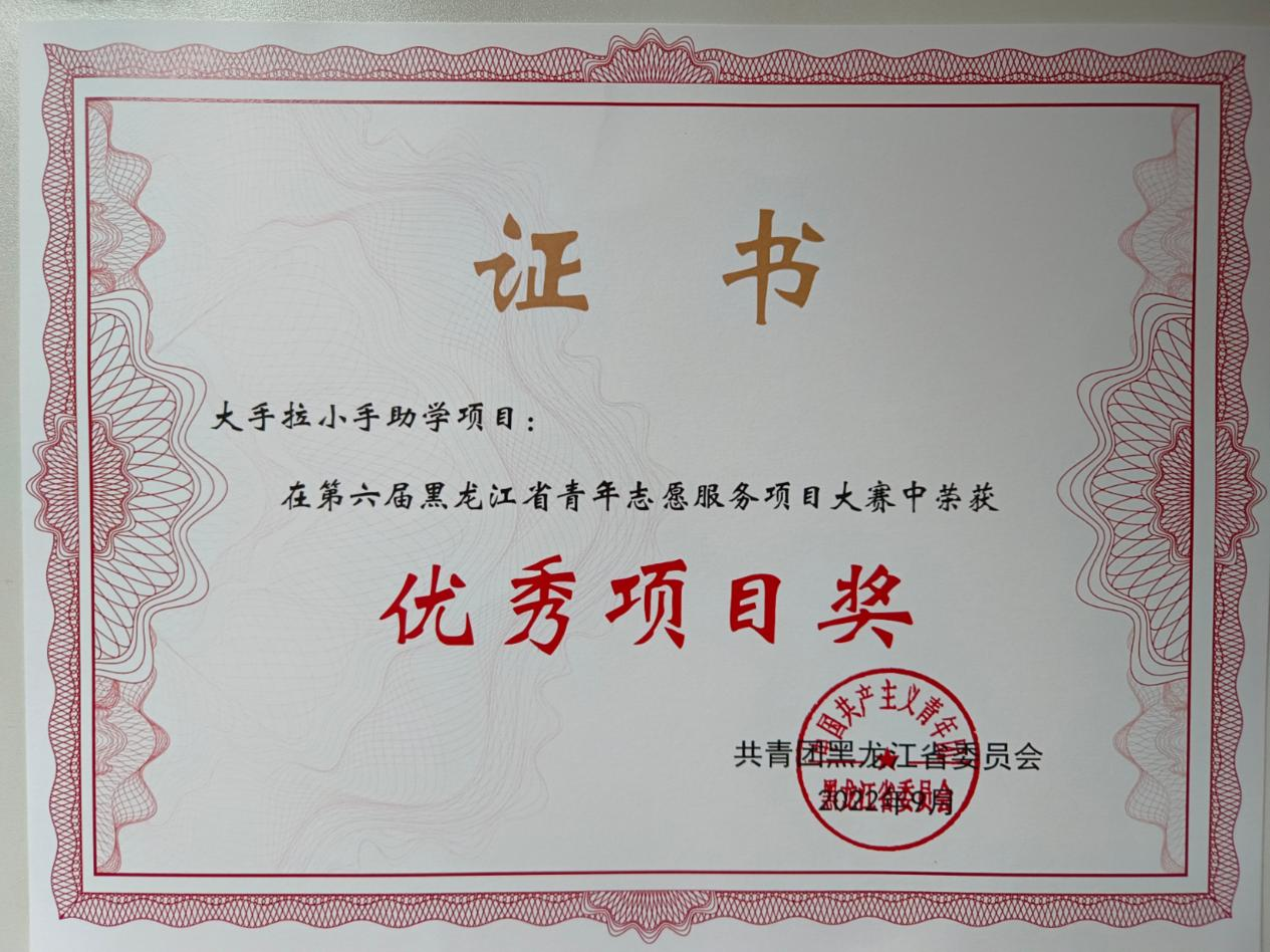 (文/黄婷婷)2022年9月14日由共青团黑龙江省委员会主办的第六届黑龙江省青年志愿服务项目大赛圆满落幕。本次活动经各市(地)团委、各省管企业团委、各高校团委等单位组织推报,共138个青年志愿服务项目参与评选。经资格审查、材料初评、项目终评,评选出第六届黑龙江省青年志愿服务项目大赛金奖7个、银奖10个、铜奖10个、优秀项目奖11个。经过激烈的角逐,我校团委推荐的马克思主义学院爱微益社团《大手拉小手助学》项目荣获“黑龙江省青年志愿服务项目大赛优秀奖”。