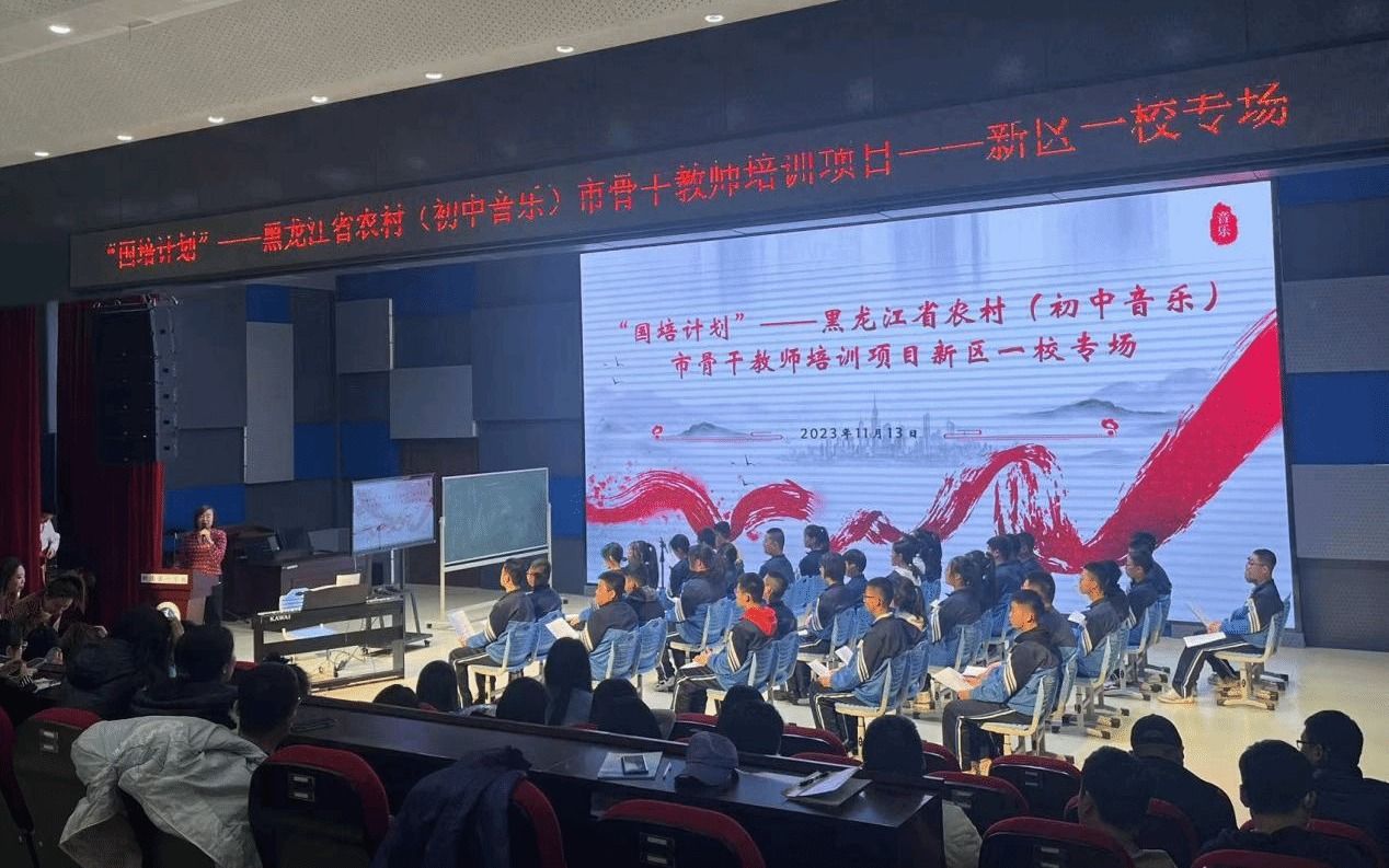 在哈尔滨音乐博物馆,学员们参观乐器的陈列馆,了解音乐家历史背景,深入了解艺术作品背后的故事和意义。哈尔滨市新区实验学校,哈尔滨市新区二校培训专家现场指导,教学流程顺畅,教师讲解内容详略得当,戏曲教学的2位教师基本功扎实,课堂氛围活跃。在哈尔滨市第十七中学、哈尔滨市第二十一中学、新区一校进行跟岗实践。通过十七中学教师示范的《身体打击乐》与《音乐艺术培育文化自信》两节课,学习声势的基本顺序,利用自己身体创编声势律动,音乐元素进行创编,在音乐教学过程中善于制造音乐,创造音乐。在第二十一中学专场观摩教学,通过两节教学课堂展示,突出强调把教材单位转化为大单元的理论,围绕大单元主题,促进学生迁移应用,发展学生的课程核心素养。在哈尔滨市新区一校的教学实践课程内容为八年级《天路》和七年级《船工号子》,两位任课教师对教材分析透彻,特别是音乐主题的设计体验方式出彩,学生完全融入到活动中,教学目标明确,重点突出,课堂气氛活跃,充分调动了学生的积极性和主动性。