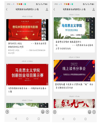 学生活动是育人的载体,马院充分发挥实践教学活动促学风建设中育人导向作用。通过学生班会、创新创业大赛、俄乌冲突演讲比赛、华文杯比赛、学生志愿社团等实践活动拓展多元导学活动形式,将学风建设延伸到课堂之外,充分挖掘学生内在潜力,激发学生自我提升的效能,逐步形成你追我赶的积极向上的学风。