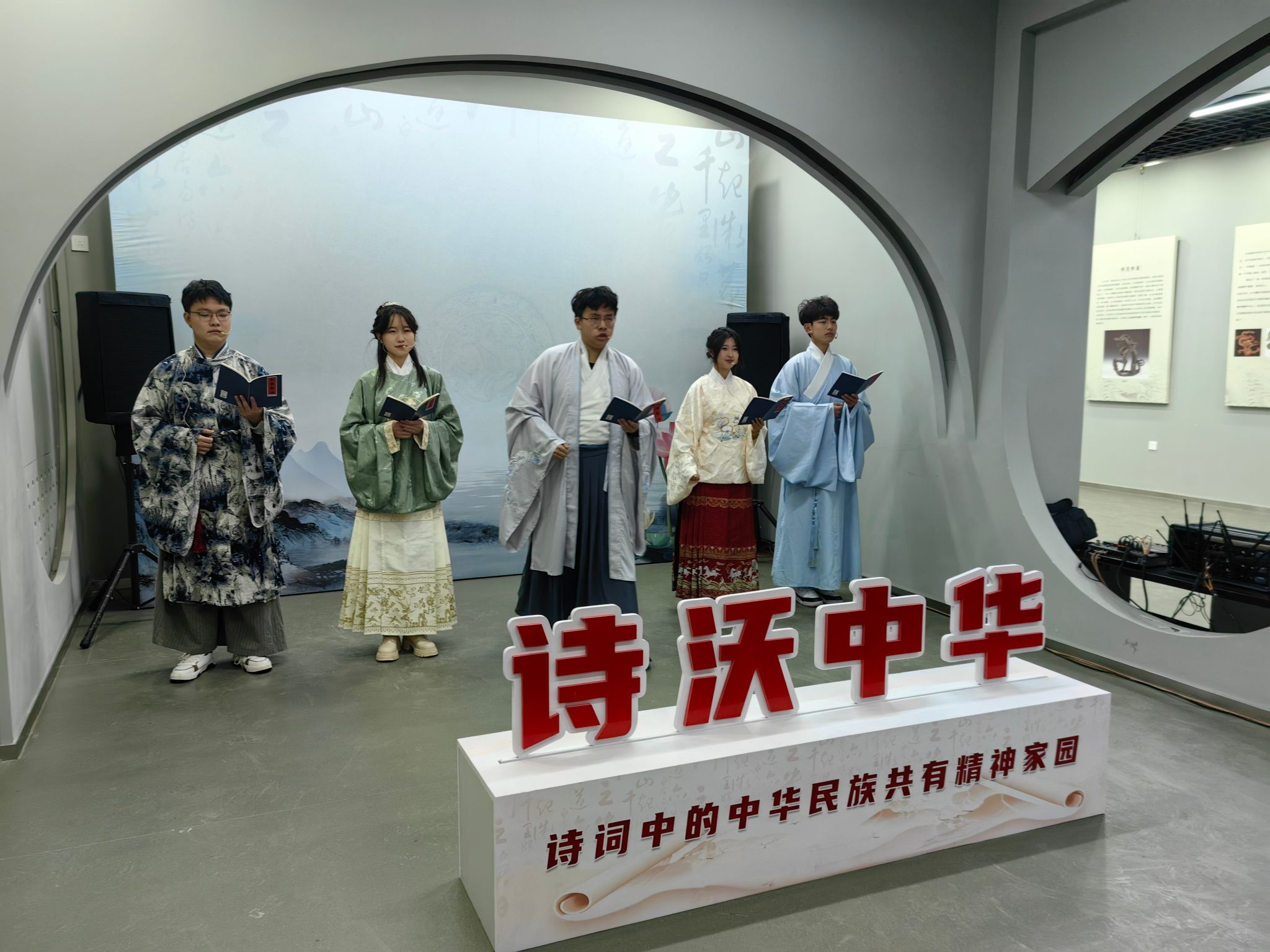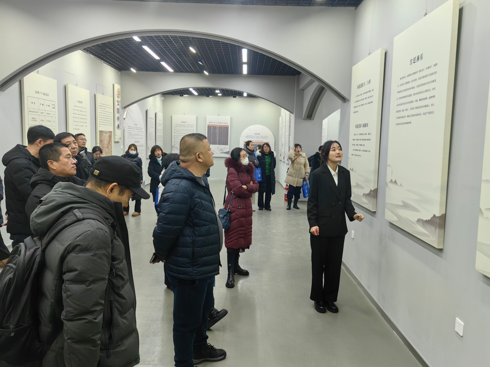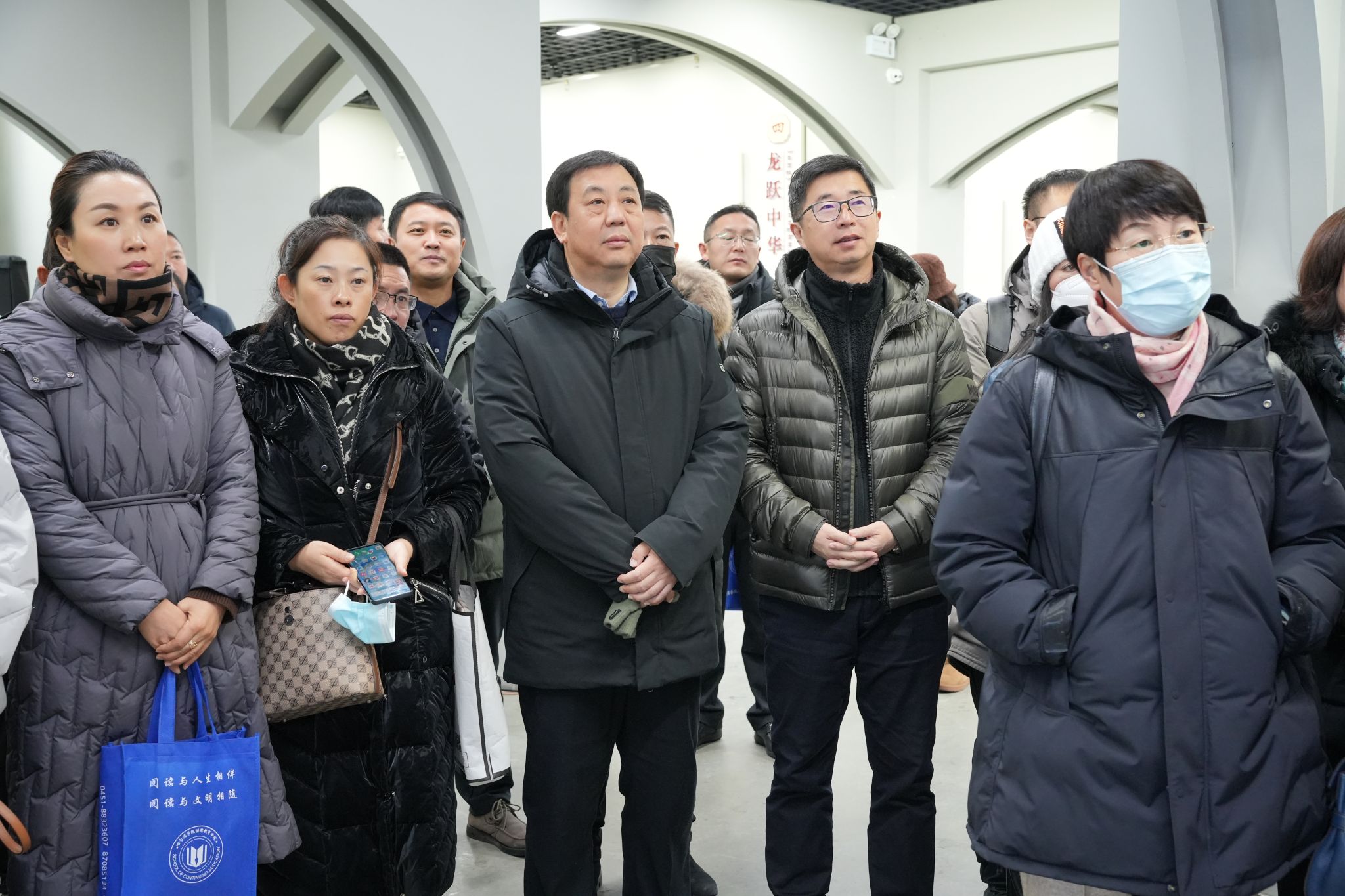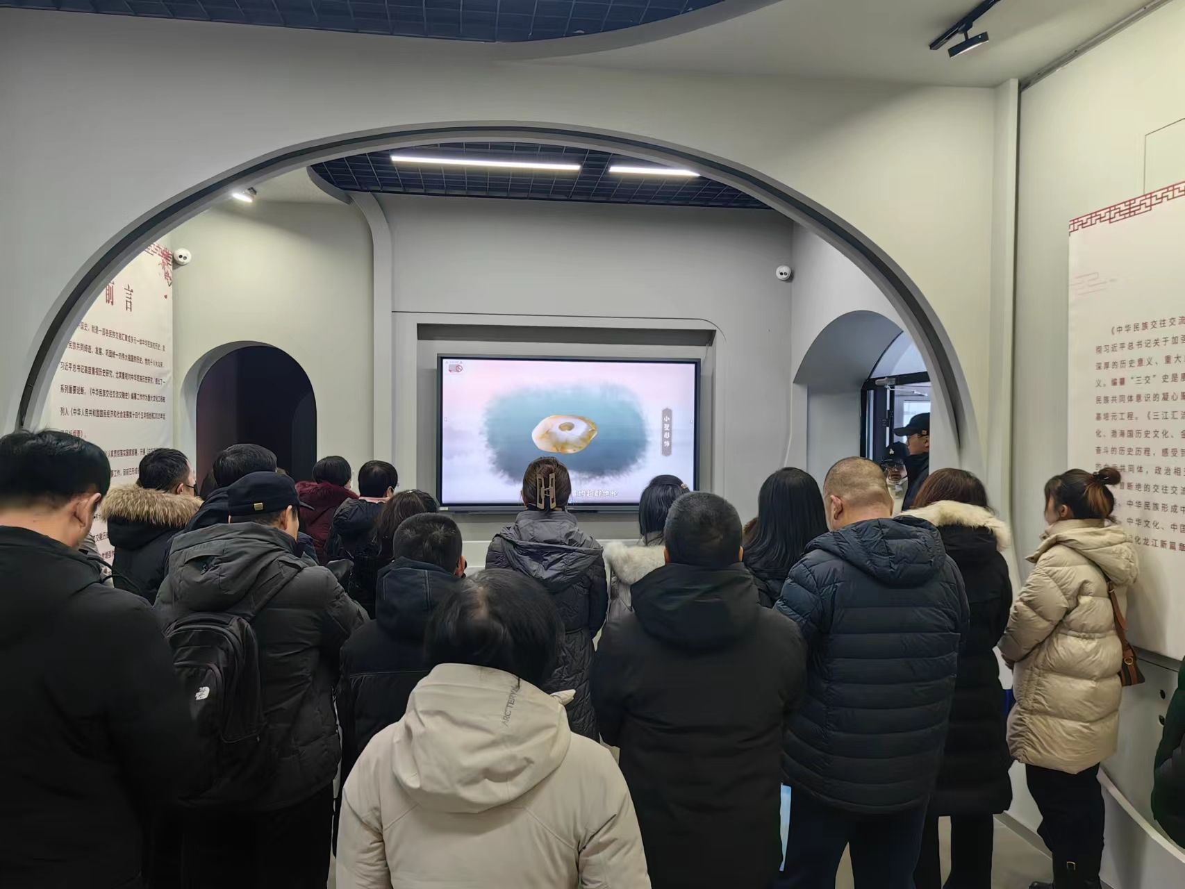 学校统战部、艺术与设计学院及展馆负责同志热情接待了民族中小学书记、校长一行人。全体学员观看了《三江汇流润中华》宣传短片,学校2023级学生组建的讲解团认真详实的为学员宣讲了馆内五个部分的板块,涵盖了中华民族共同体意识和龙江四大精神等内容。在诗沃中华板块,文法学院学生身着汉服用诗歌生动的诠释和再现了从古至今各民族大融合的场景,让所有人都有身临其境般的感受。得到全体书记、校长的好评。参观之后,全体书记、校长参加了座谈会,大家积极发言,为哈尔滨市民族学校发展献计献策。市教育局义务教育处刘红梅、李叔恒主持了座谈会。