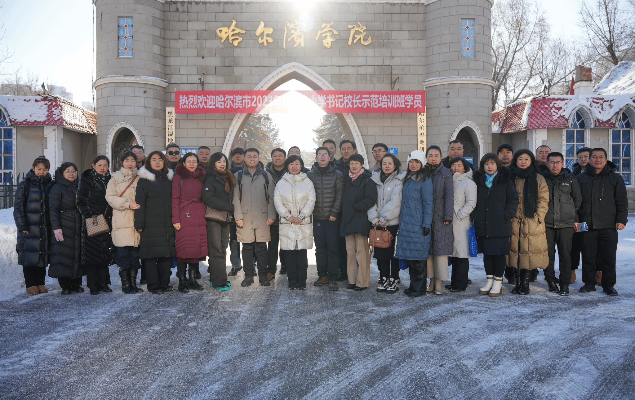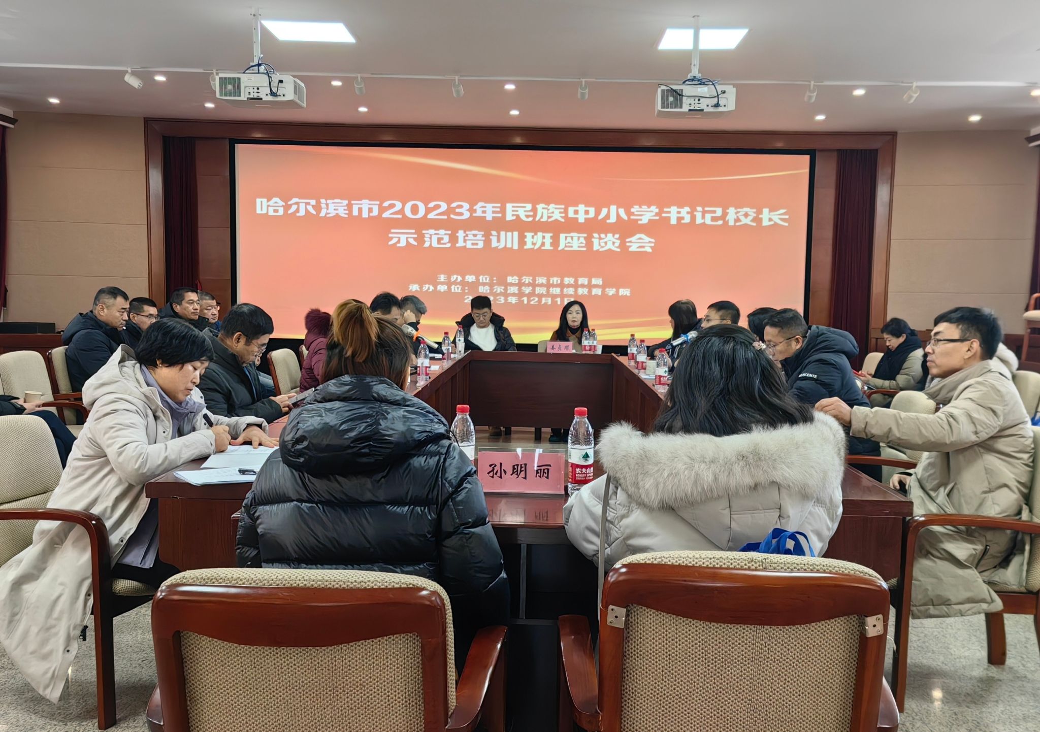 (文/郝哲源)12月1日上午,在学校继续教育学院组织安排下,来自哈尔滨市34所民族中小学书记、校长到我校“铸牢中华民族共同体意识教育实践基地”开展现场教学。副校长孙红镱到现场指导工作。哈尔滨市教育局义务教育处三级调研员刘红梅、主任科员李叔恒参加本次活动。