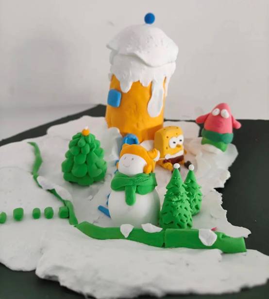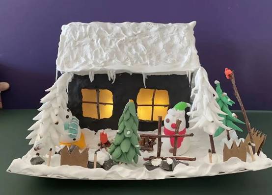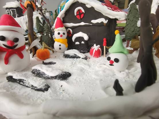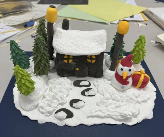 同学们以轻型纸粘土为主要材料,根据自己设计的草稿,通过丰富的想象力和艺术技巧来制作自己的微景观。其中包括雪松、雪人、白雪覆盖的房子以及其他与冰雪有关的场景。