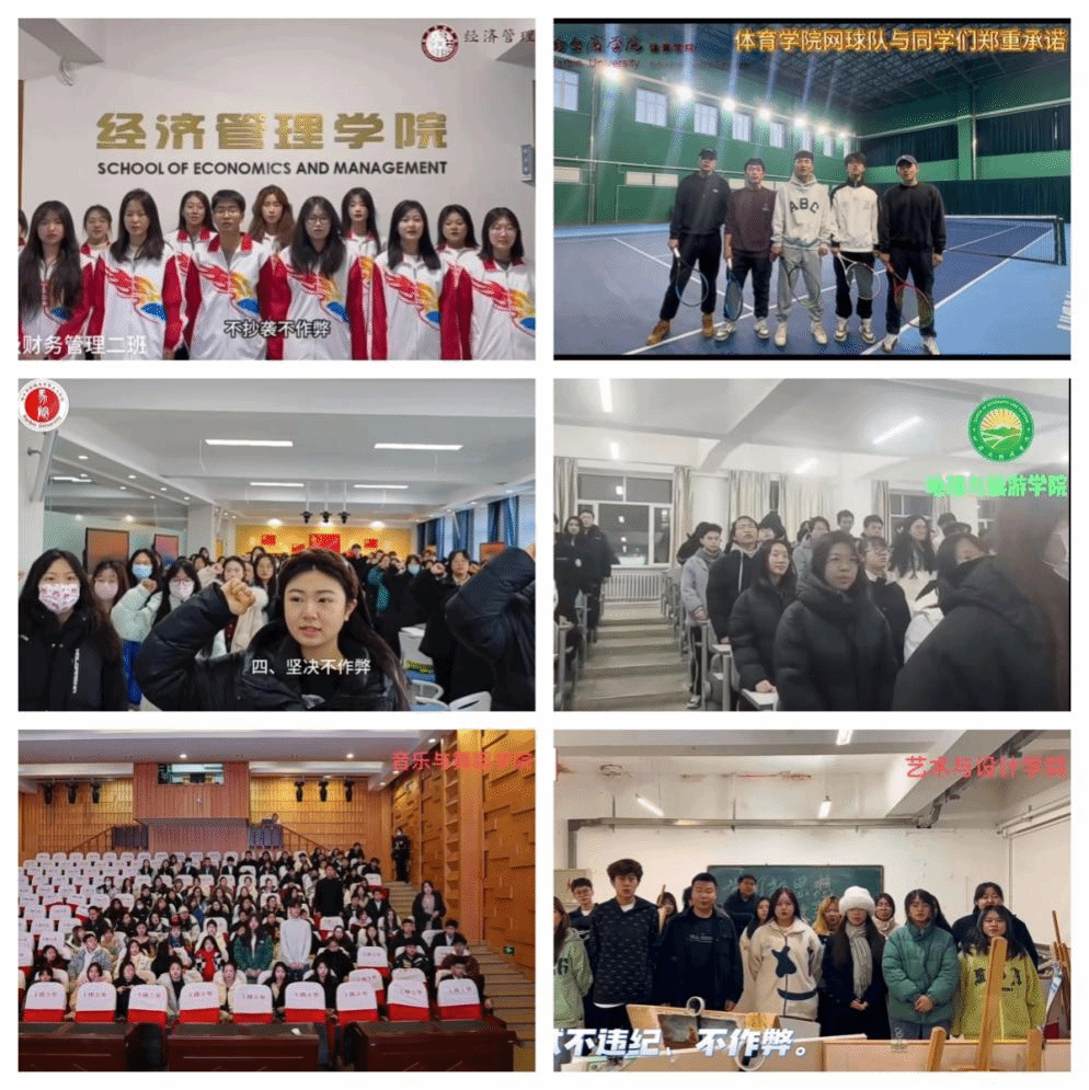 (文/张强)为持续深化学风建设,推动学风建设成效转化,培养学生诚实守信的行为准则和道德修养,按照《哈尔滨学院2023-2024学年学风建设落实方案》和《关于开展2023学年秋季学期诚信考试教育系列活动的通知》要求,在期末学生应试备考期间,学生处组织各二级学院多措并举开展诚信考试主题教育系列活动。