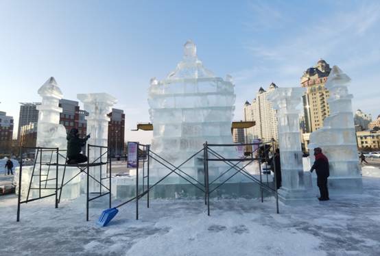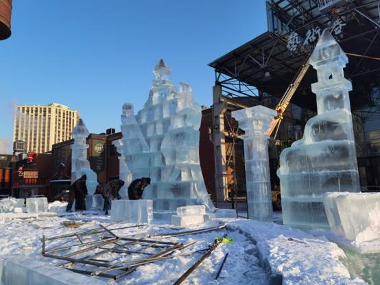 同时,通过欧亚之窗冰雪雕园的建设,加强了冰雪雕刻技艺理论研究和设计创新,在文字、数字、字母创意实践表现新方法方面寻找突破口,以37块冰雕、30块雪雕、42块冰版画、2组浮雕雪墙和200米冰川雪谷景观打造为载体,在冰雪文化、冰雪旅游、冰雪装备产业发展方面培养了传承冰雪创意设计的后备人才。还为五大连池风景区、逊克大平台雾凇景区冰雪文化景观及文旅活动进行策划、设计、施工,贡献了城市大学的智慧和力量。