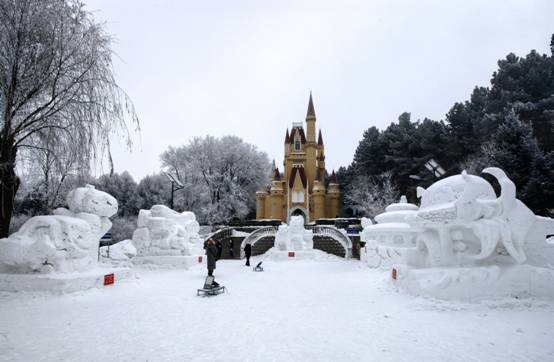 广大市民再次欣赏了以“龙图腾”为主要造型的高160㎝冰雕12块;以“砥砺前行”“龙年有鱼”“大美冰城”“魅力南岗”为主题的高100㎝的微冰雕30块,以及“大美冰城、巧手南岗”冰版画作品30幅、全省大学生雪雕获奖作品25组,更有30个仿冰雪琉璃作品驻场展览。而且,欧亚之窗冰雪雕园标心立异,还建造了200米的冰川雪谷景观,免费向市民开放,极大的丰富了哈尔滨市民的冰雪文化生活,为大力发展冰雪创意设计产业和哈尔滨“七大都市〞建设贡献了智慧和力量。
