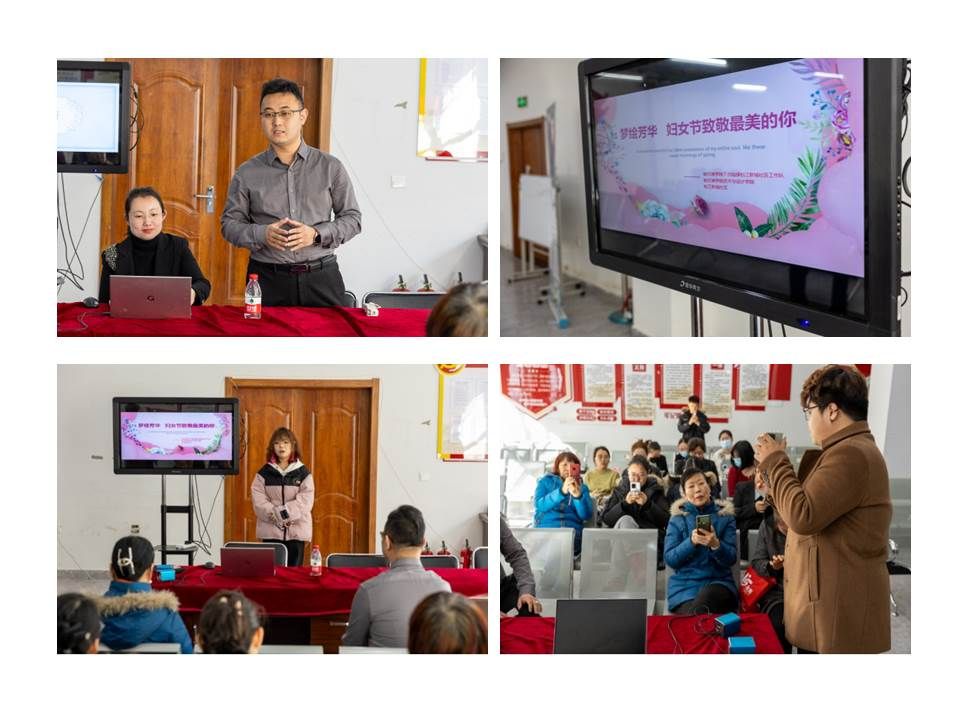 包保社区工作队队长鄂睿峰代表学校对社区所有女同志表示了节日问候,并对此次活动主题及内容做了简短的介绍。艺术与设计学院摄影专业学生侯朝奕、秦蕴萌分别为社区的女职工们分享了手机自拍美颜技巧和化妆保养护肤方面的知识,引起了女性职工们浓厚的兴趣,现场交流气氛热烈,频频互动,很多日常碰到的相关问题都得到了解答。
