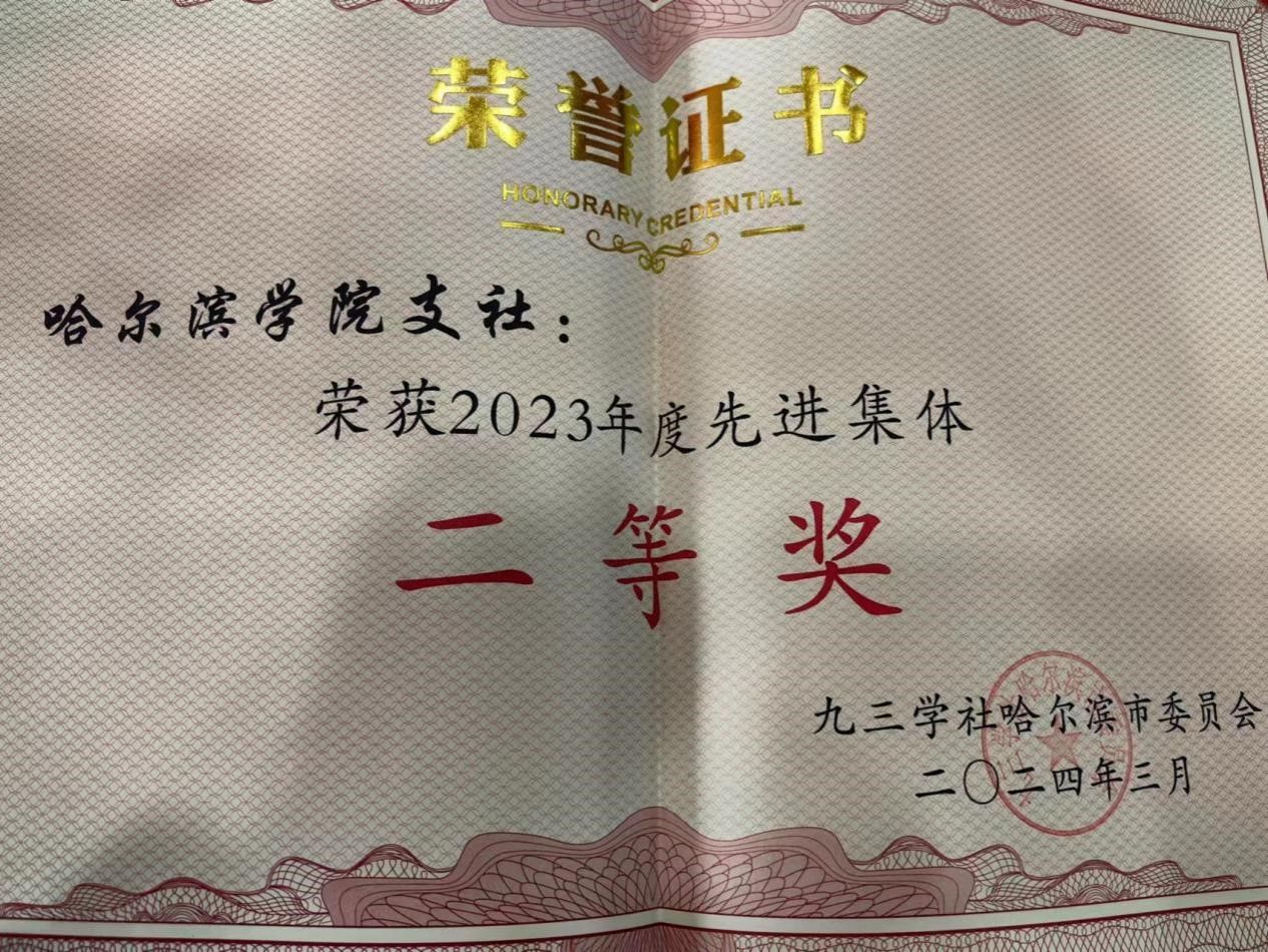 会议学习传达了习近平总书记在全国政协新年茶话会上的讲话精神、习近平总书记在二〇二四年春节团拜会上的讲话精神、九三学社十五届二中全会精神、九三学社省委九届三次全会精神、中共黑龙江省委十三届五次全会暨全省经济工作会议精神、中共哈尔滨市委十五届四次全会暨全市经济工作会议精神、全市统战部长会议精神;听取并审议了《九三学社哈尔滨市第十三届委员会常务委员会2023年工作报告》《九三学社哈尔滨市第十三届委员会内部监督委员会2023年工作报告》;通过了《关于九三学社哈尔滨市第十三届委员会常务委员会2023年工作报告的决议》《关于九三学社哈尔滨市第十三届委员会内部监督委员会2023年工作报告的决议》;表彰了2023年度先进基层组织。哈尔滨学院支社荣获2023年度市级先进集体二等奖。