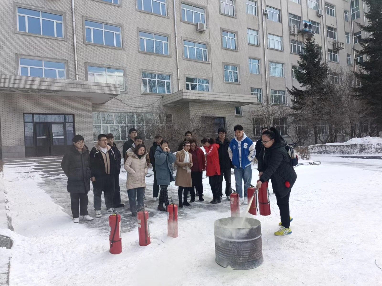 本次培训由校园消防安全知识讲座和组织灭火演练两部分组成。首先,与会人员观看了《校园火灾案例警示教育片》《宿舍消防安全演练示范片》两部与校园生活息息相关的消防安全警示教育片;聆听了于洋“校园消防安全知识讲座”,她从火灾基本常识、校园火灾案例分析、消防标识器材介绍和使用方法、发生火灾时的处理方法及如何自救逃生四个方面为与会师生做的消防安全培训。讲解过程结合大量校园火灾相关案例,使广大师生近距离感受到火灾造成危害与严重后果,掌握如何有效预防火灾事故、如何正确使用灭火器材及火场逃生技能;消防科孙岩简要回顾年初以来全国发生的重大火灾事故典型案例,提醒师生强化安全意识,牢固树立“底线意识”,认真对待会后组织的灭火演练,要真演真练,力争达到演练一次、提高一步的效果;学生处舍务科科长李丹结合讲座内容,对学生公寓易出现的违规使用电器、因不良行为导致火灾隐患作重点提示,提出了具体要求和整改意见。