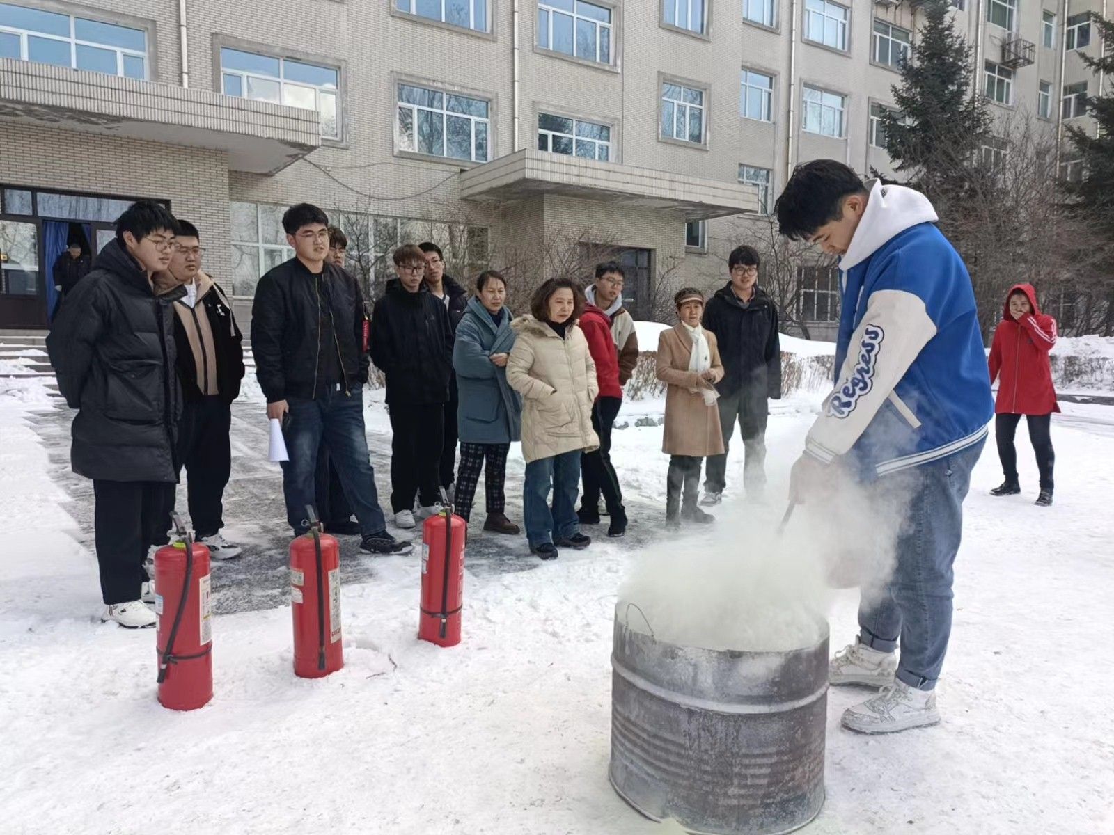 灭火演练环节,在消防科孙岩、刘震两位同志指导下,部分参会学生、公寓楼长代表进行了实战灭火演练,通过实践操作,检验了培训效果。