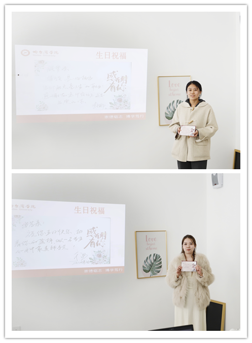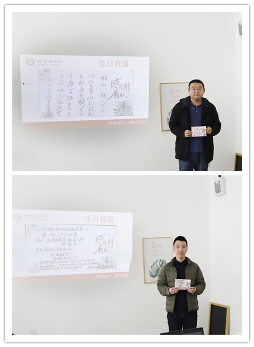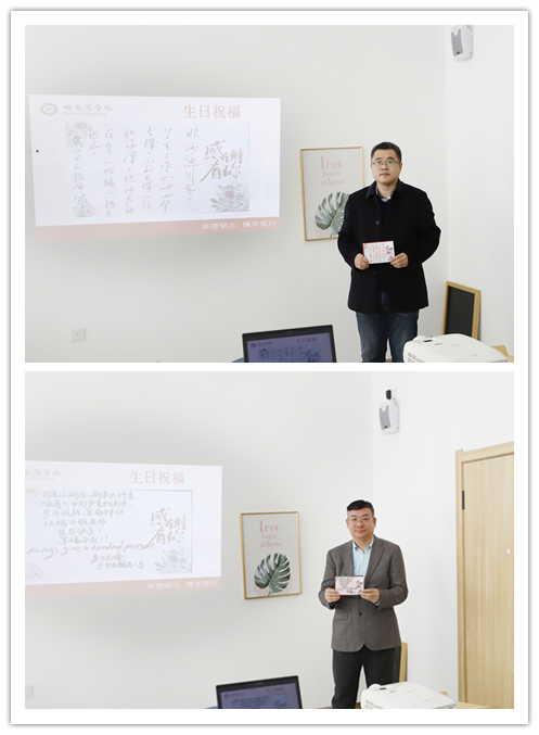集体生日会上,学生处副处长张强依次宣读了学校领导给每一位辅导员撰写的生日贺词。于成学校长写到“咬定青山不放松,立根源在学工中。千磨百炼出英才,立德树人志更坚。”李娜副书记写到“责任可以让人把事做完,情感可以让人把事做好!辅导员,是大学生朋友心中最有温度的人!”吴旭峰副校长写到“日落江湖白,潮来天地青。顺着心中的声音找到光,岁月流转,生命律动,祝福生日快乐!”。一段段催人奋进的文字、一句句感人至深的话语,表达了学校领导对辅导员队伍建设的高度重视,对辅导员个人成长发展的关心与爱护。一张张贺卡是一种力量的汇集,是一份责任的传递,是一种精神的传承,这就是铸魂育人的力量,领航青春的责任,扎根奉献的精神。
