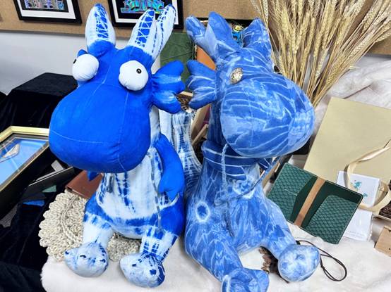 哈尔滨学院李茉函老师指导的学生肖楠选送的两款文创产品《碎冰花文龙呆萌蓝雪龙》荣获铜奖。产品主要是以传统的植物染色工艺结合扎染技艺制作而成,可爱又呆萌的两只小龙成为龙江特色伴手礼。