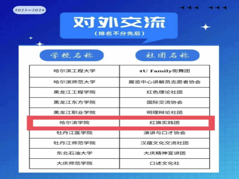 一直以来,校团委高度重视学生社团的建设和发展,持续发挥学生社团“第二课堂”育人功能,激发社团活力,把学生社团建设作为落实立德树人根本任务、推进高质量人才培养的重要载体,校团委将以此次两支社团入选为契机,持续推动学生社团规范化建设、可持续发展,服务广大哈院青年学生成长成才,培养广大哈院青年成为德智体美劳全面发展的综合素质人才。