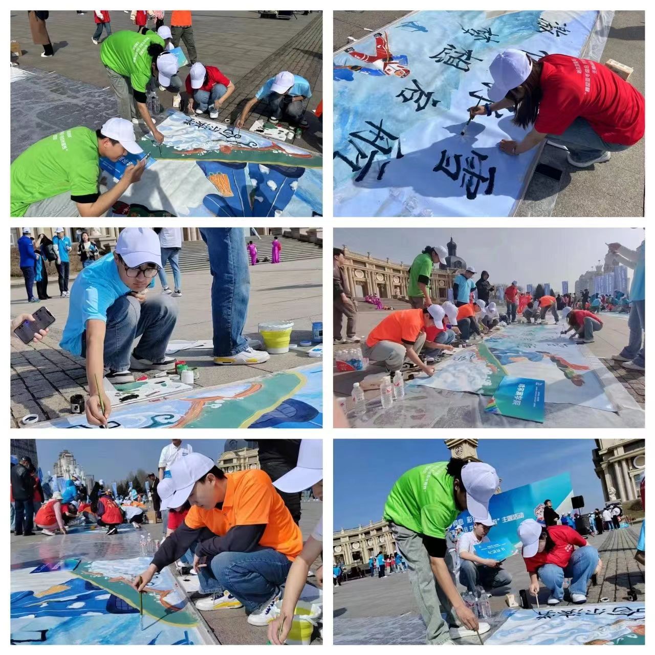 我校青年学子与来自东北农业大学、黑龙江大学、哈尔滨师范大学、哈尔滨剑桥学院等19所在哈高校的300名青年学子组成20支团队,齐聚美丽的哈尔滨群力音乐公园,以画笔为媒、以色彩为语,共同绘就百米画卷,献上属于青年人的美好祝愿。这些作品充满亚冬元素、龙江色彩、哈尔滨特色,有对体育精神的赞美,有对家乡美景的热爱,主题鲜明、内容丰富、风格多样,表达了冰城青年学子对亚冬盛会的青春期待与真挚祝福。