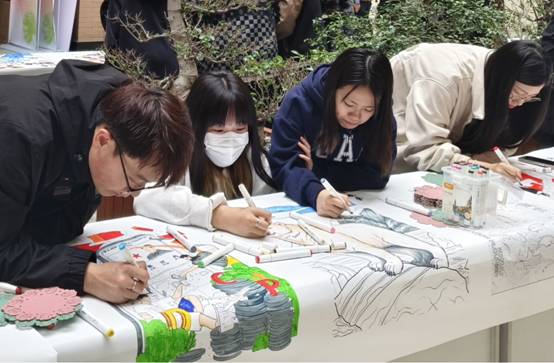 活动现场,一幅长达百米的画卷在阳光大厅铺展开来,成为了同学们学习国家安全知识的新载体。艺术与设计学院的同学们充分发挥自己的想象力,用色彩斑斓的画笔在长卷上描绘出了一幅幅生动的画作。这些作品既有国家安全教育的主题元素,又融入了同学们的爱国情怀和对美好生活的向往,同时充分展现了同学们的艺术才华。