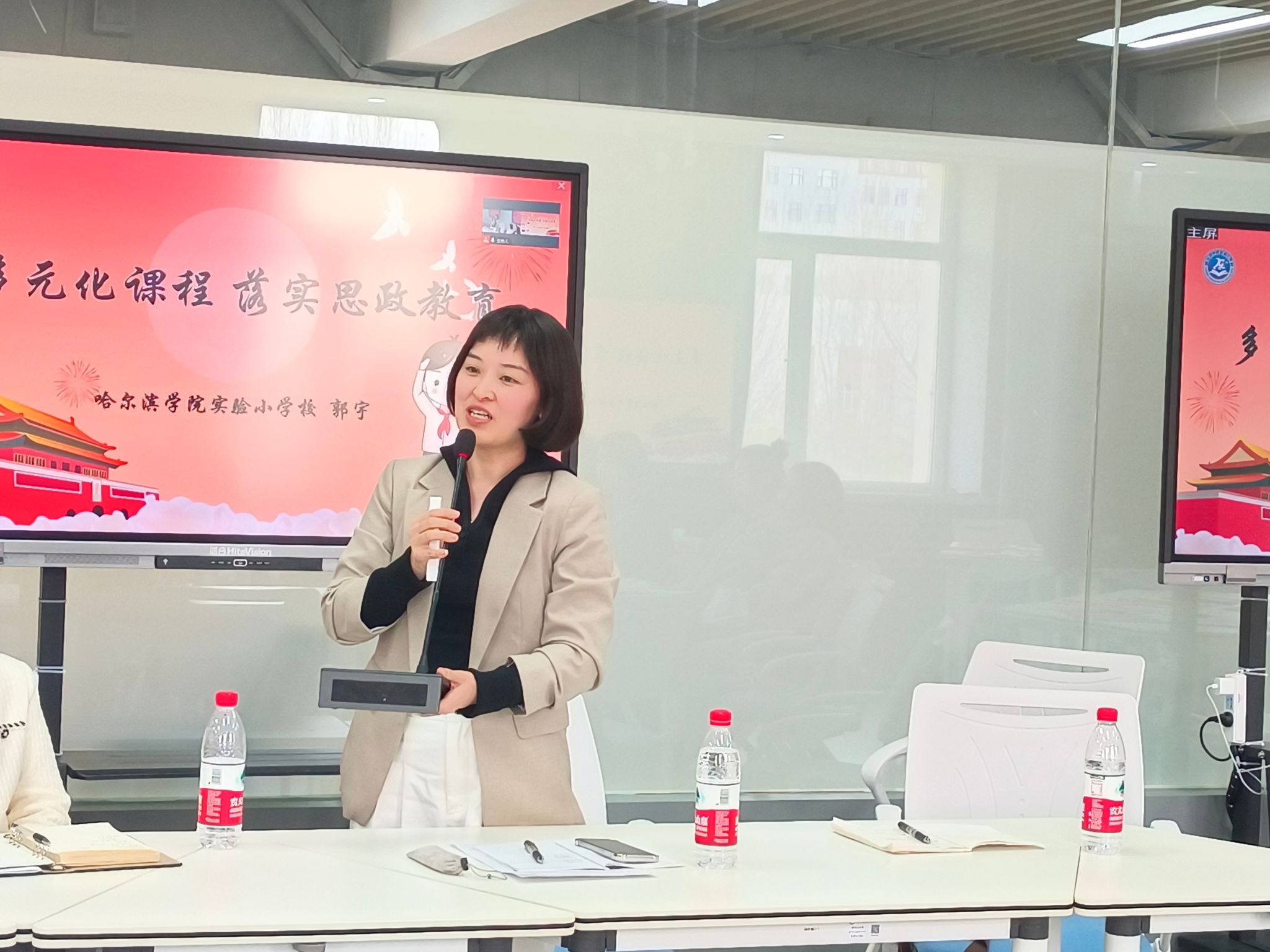 集体备课会上,安慧玉教授通过我校国家级一流本科课程《思想政治理论课实践教学》的建设案例,生动地剖析了课程建设的历程、核心理念及其经验做法。刘晓文、冯引、顾博、王莹等四位教研室主任各自就实践活动的三级进阶、实践活动中“世情、课情、学情”的有机结合、朋辈分享式实践、项目化实践以及精准实践等主题进行了深入的交流和分享,展示了各自教研室在思政课实践教学方面的作法与创新。刘学伟院长介绍了黑龙江东方学院思政课建设情况,黑龙江东方学院马克思主义学院副书记、教研室主任王志敏和其他四位教师分享了他们在思政课实践教学方面的独特做法和成果。哈尔滨市继红小学的孟宇教师及哈尔滨学院实验小学的郭宇主任分别介绍了各自学校在小学思政课和德育工作方面的特色和创新,为参会者提供了鲜活的经验和启示。