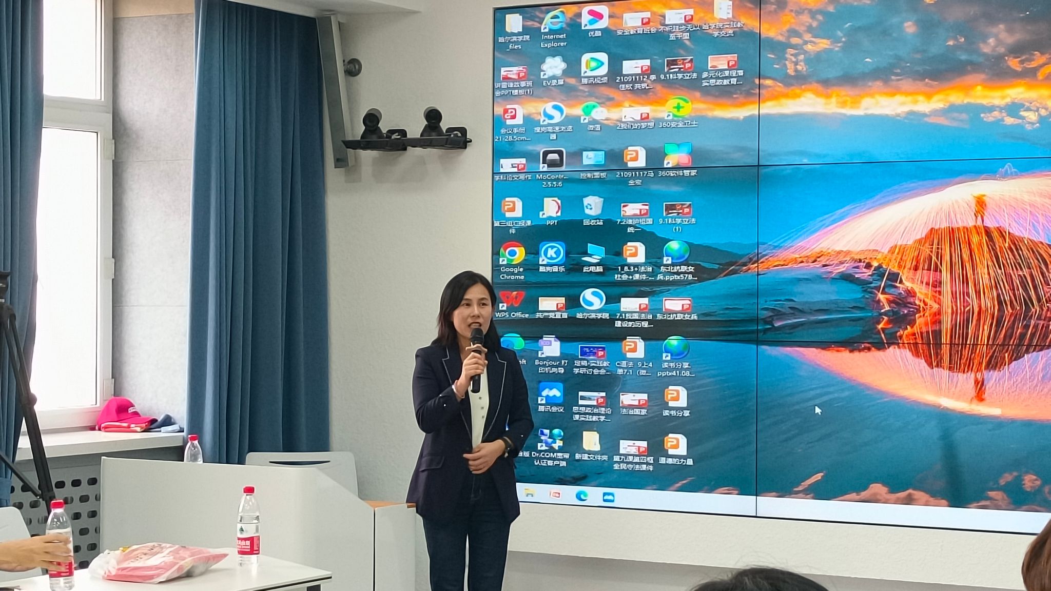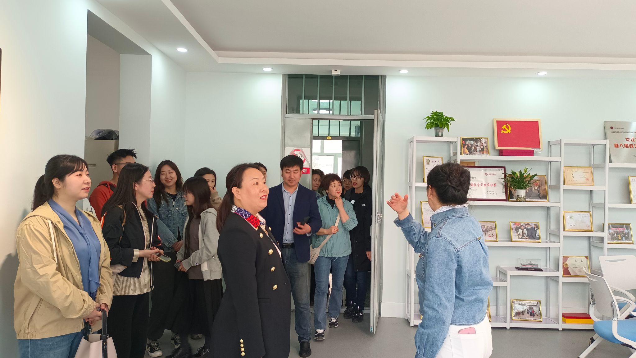 黑龙江东方学院马克思主义学院院长刘学伟教授率领20余名教师、哈尔滨市继红小学孟宇老师、哈尔滨学院实验小学校郭宇主任和黄淑艳组长来到马克思主义学院智慧思政实践基地,共同探讨新形势下思政课实践教学一体化的新思路、新方法。与此同时,马院思政专业17级毕业生,分布在各省市中小学的12名一线政治教师也同步参加了线上会议。马克思主义学院党总支书记孙芳、副院长李景瞳以及各教研室主任、部分教师参加会议。会议由思政课名师工作室负责人安慧玉教授主持。